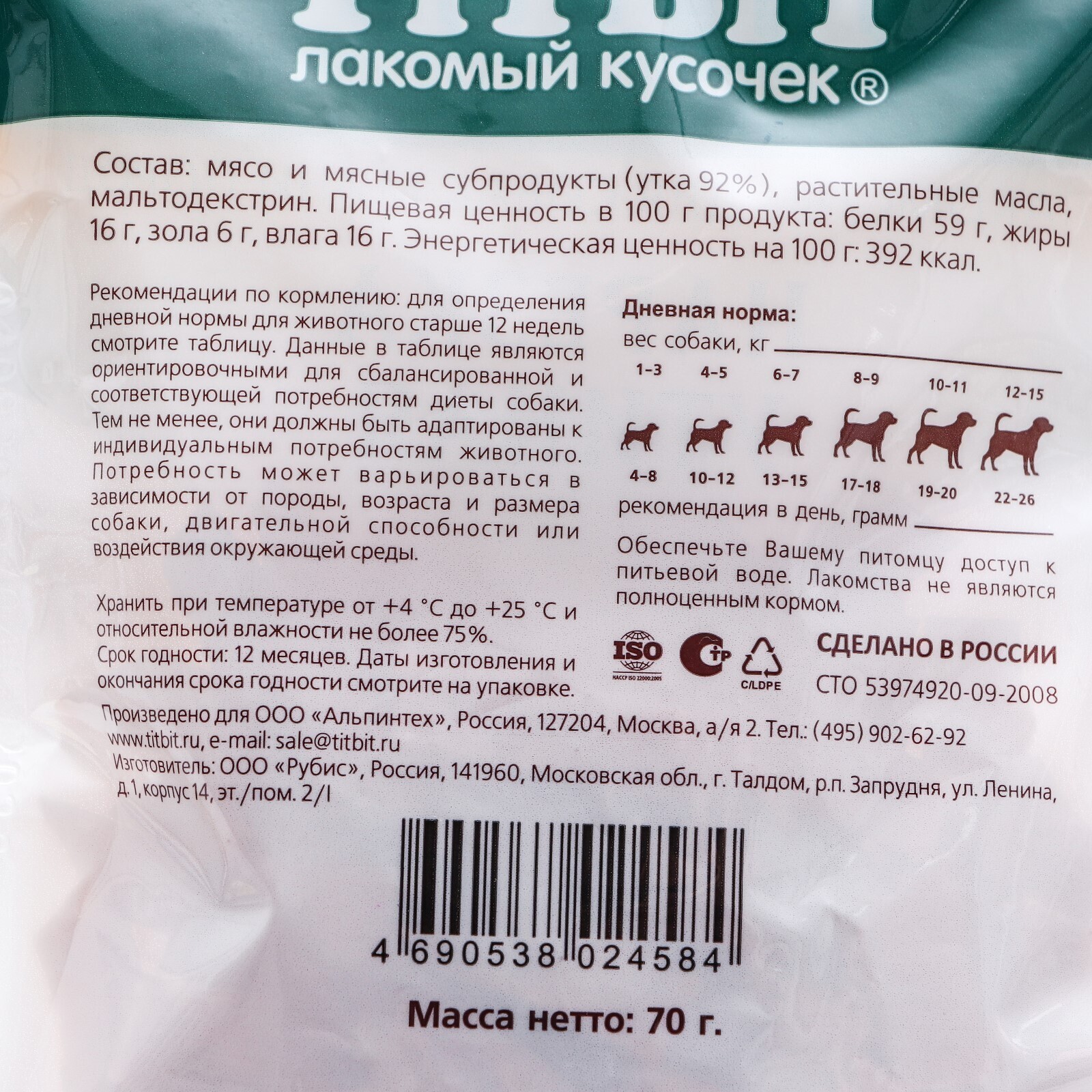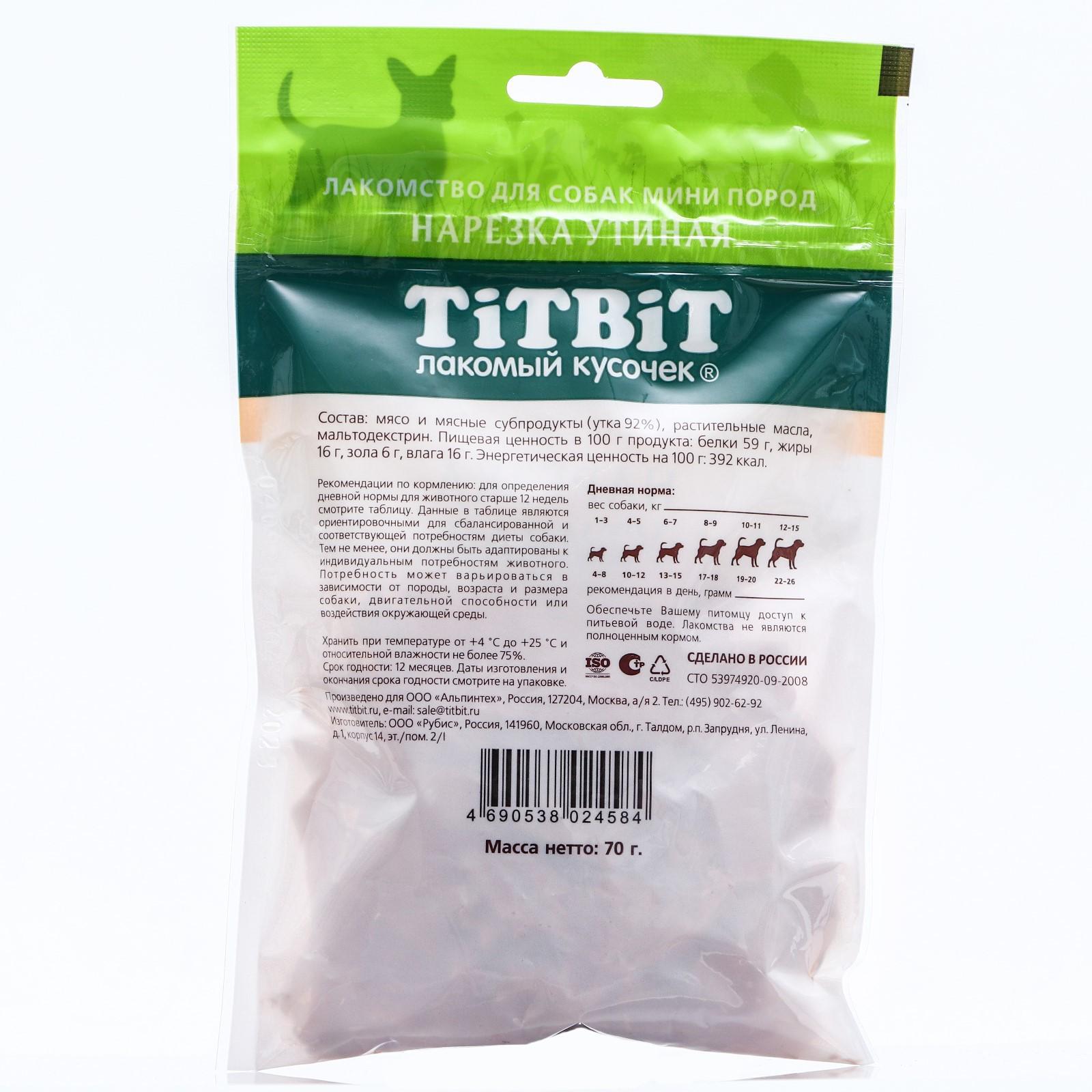 Лакомство для собак мини-пород Titbit нарезка утиная 70 г