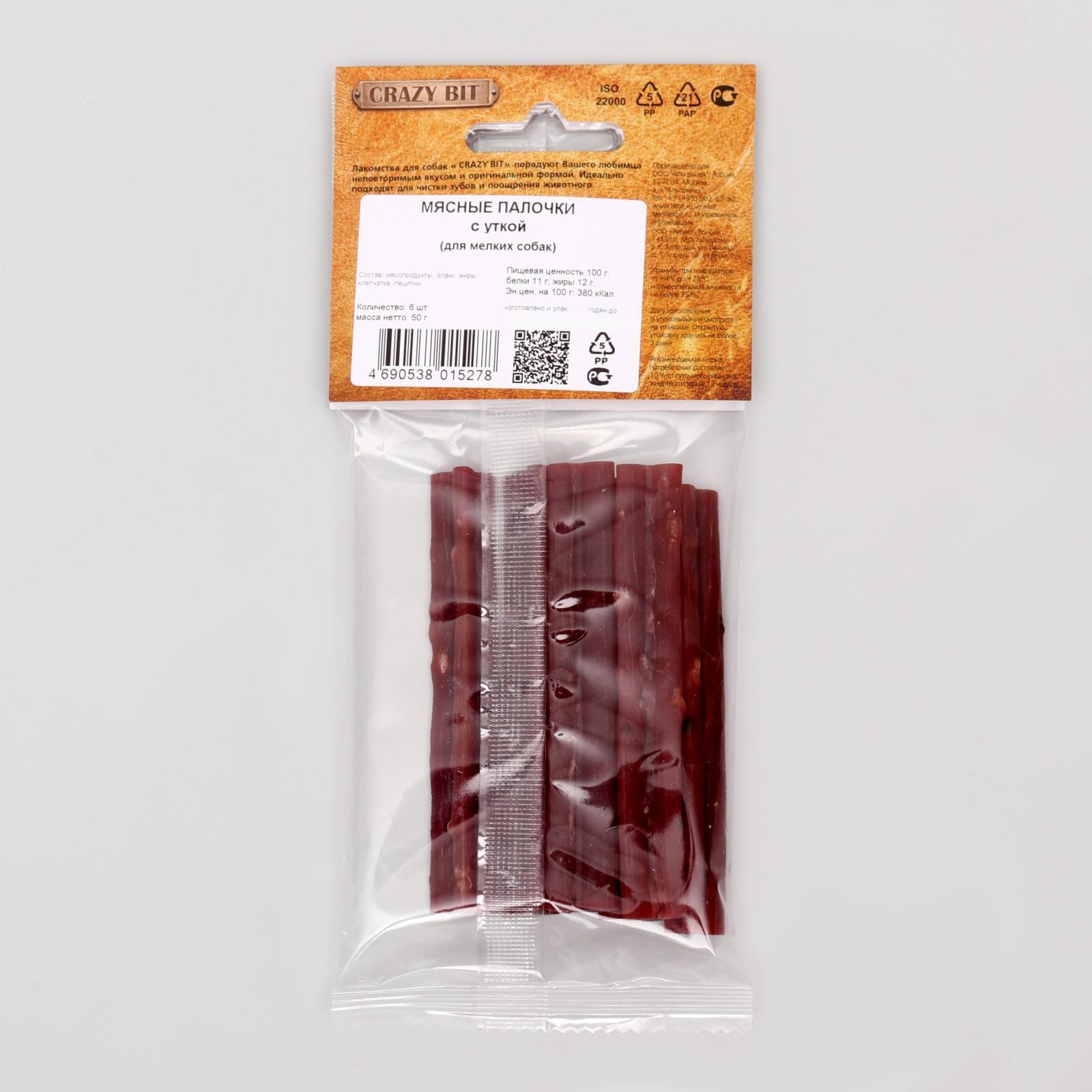 Мясные палочки для чистки зубов TitBit Crazy Bit для мелких собак, с уткой, 6 шт, 50 г