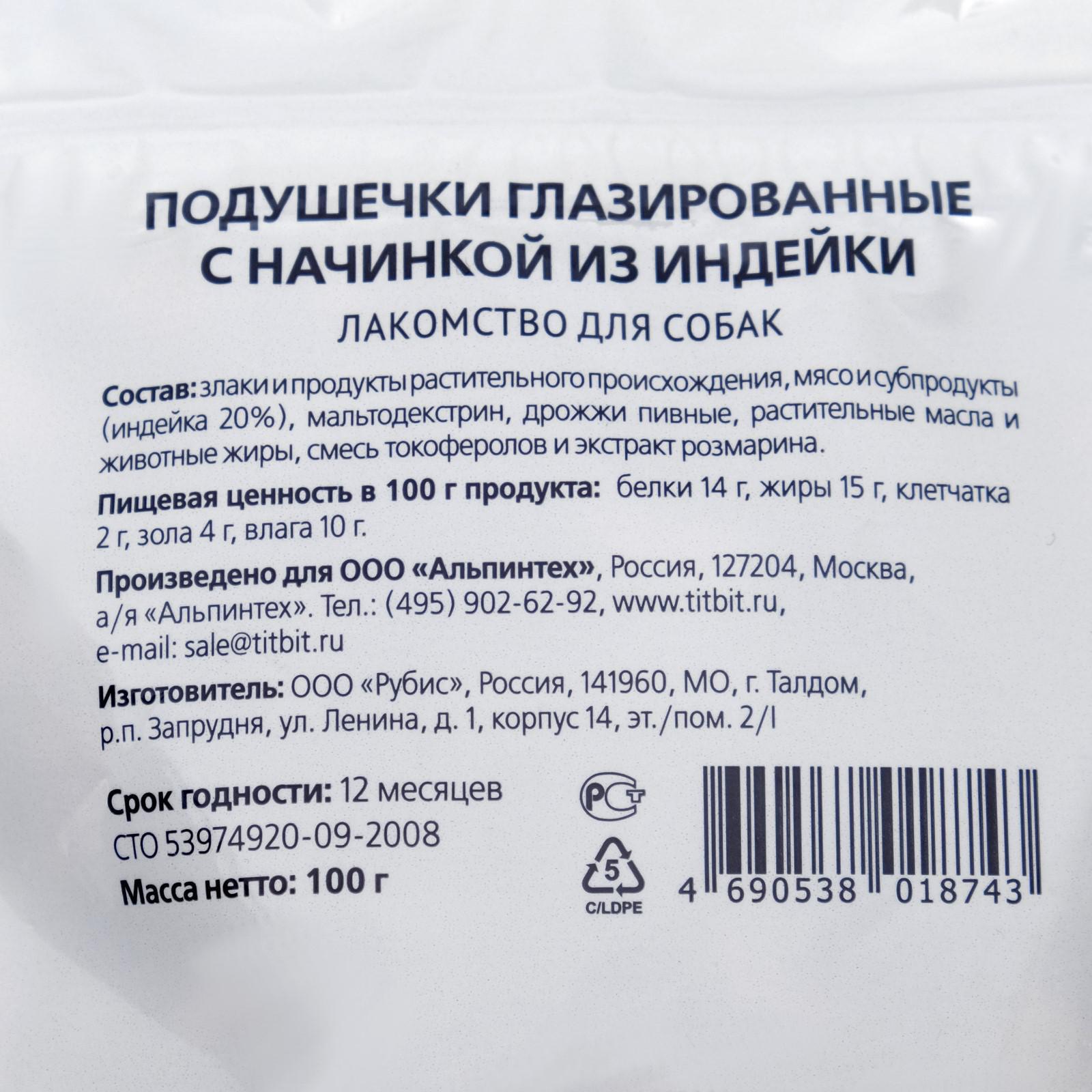 Подушечки глазированные TitBit "Золотая коллекция" для собак, с начинкой из индейки, 100 г