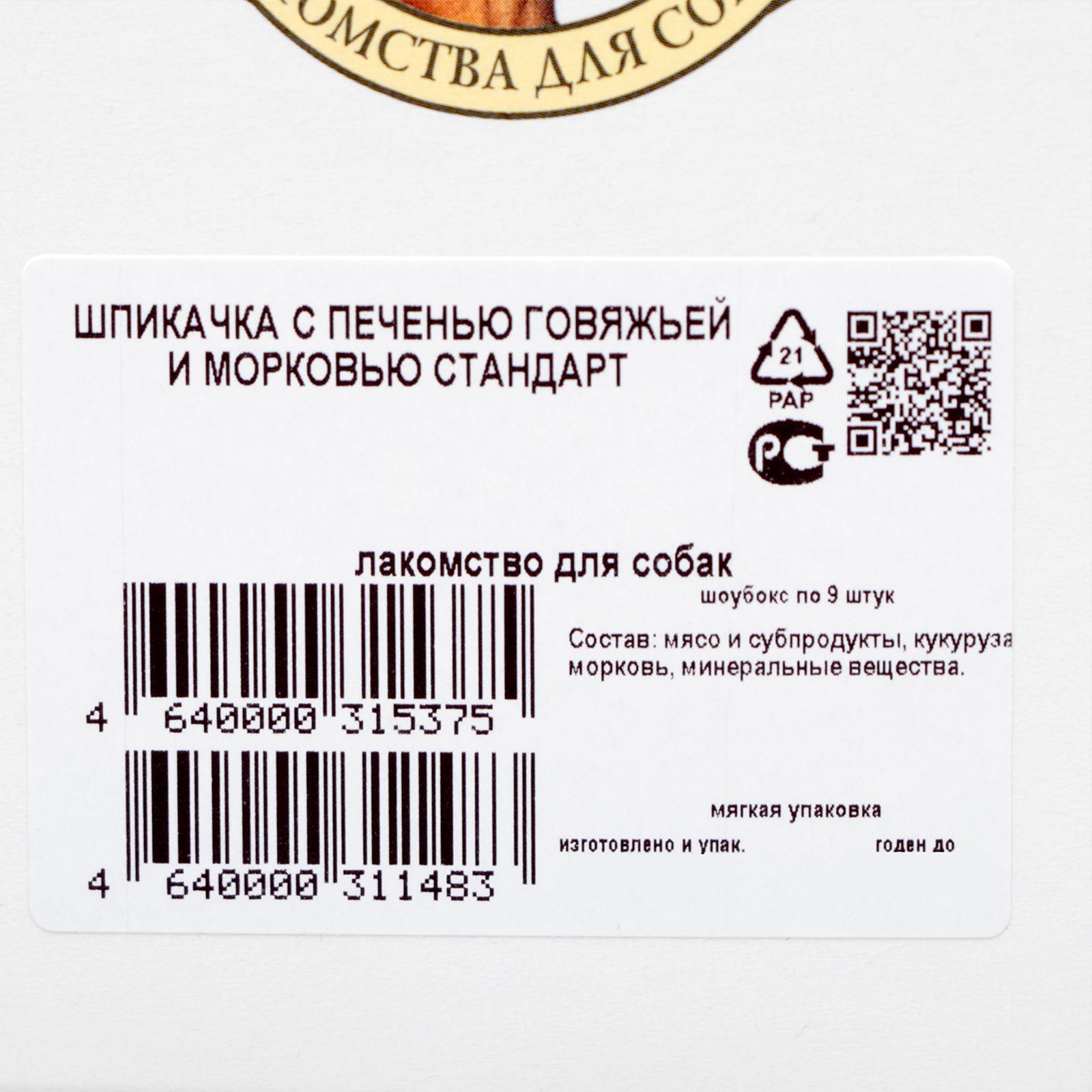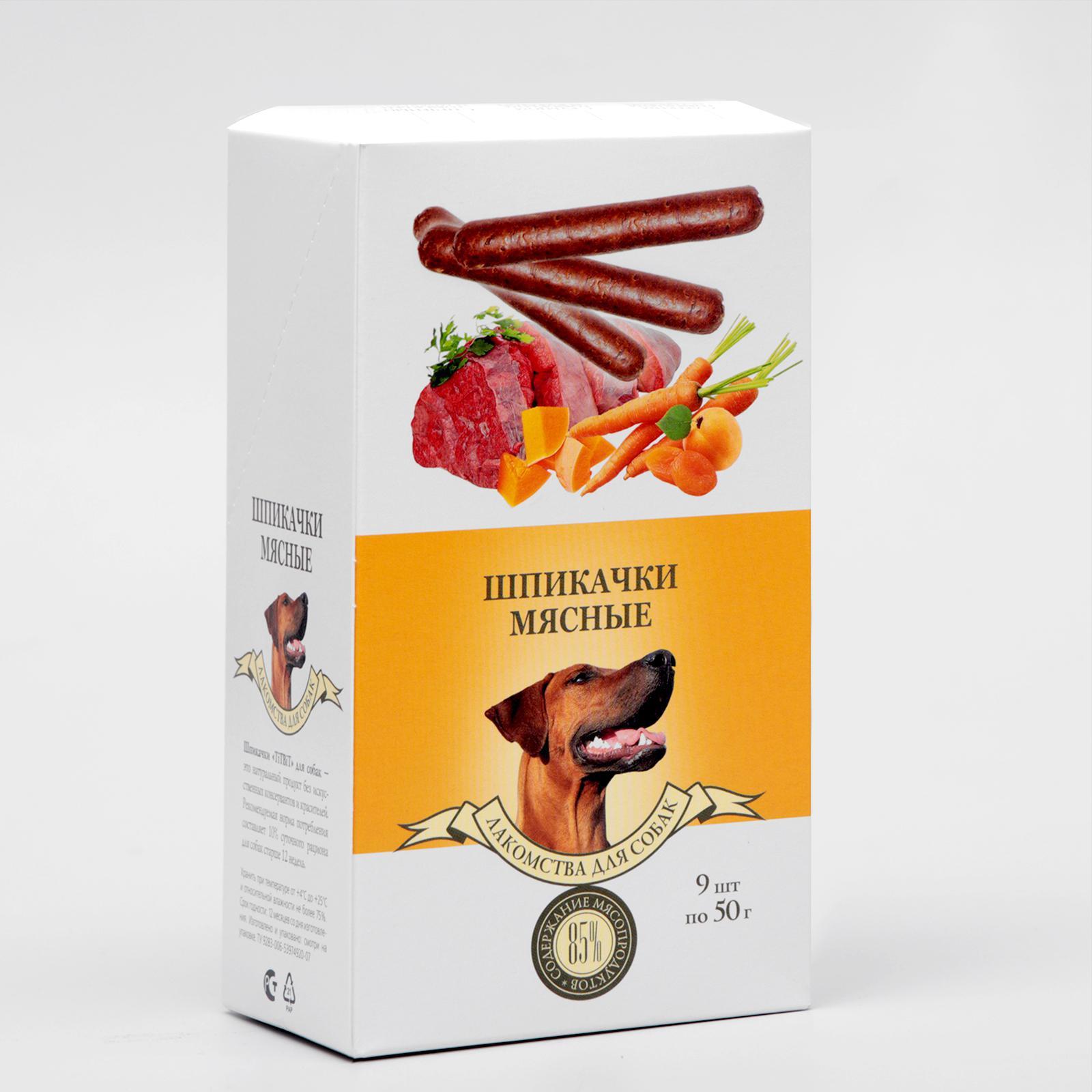 Колбаски для собак Шпикачка. Изготовлены из говяжьего мяса и мясных субпродуктов по колбасной технологии с добавлением таких полезных компонентов, как кукуруза, морковь и печень говяжья. Натуральный продукт, который не содержит красителей и консервантов.