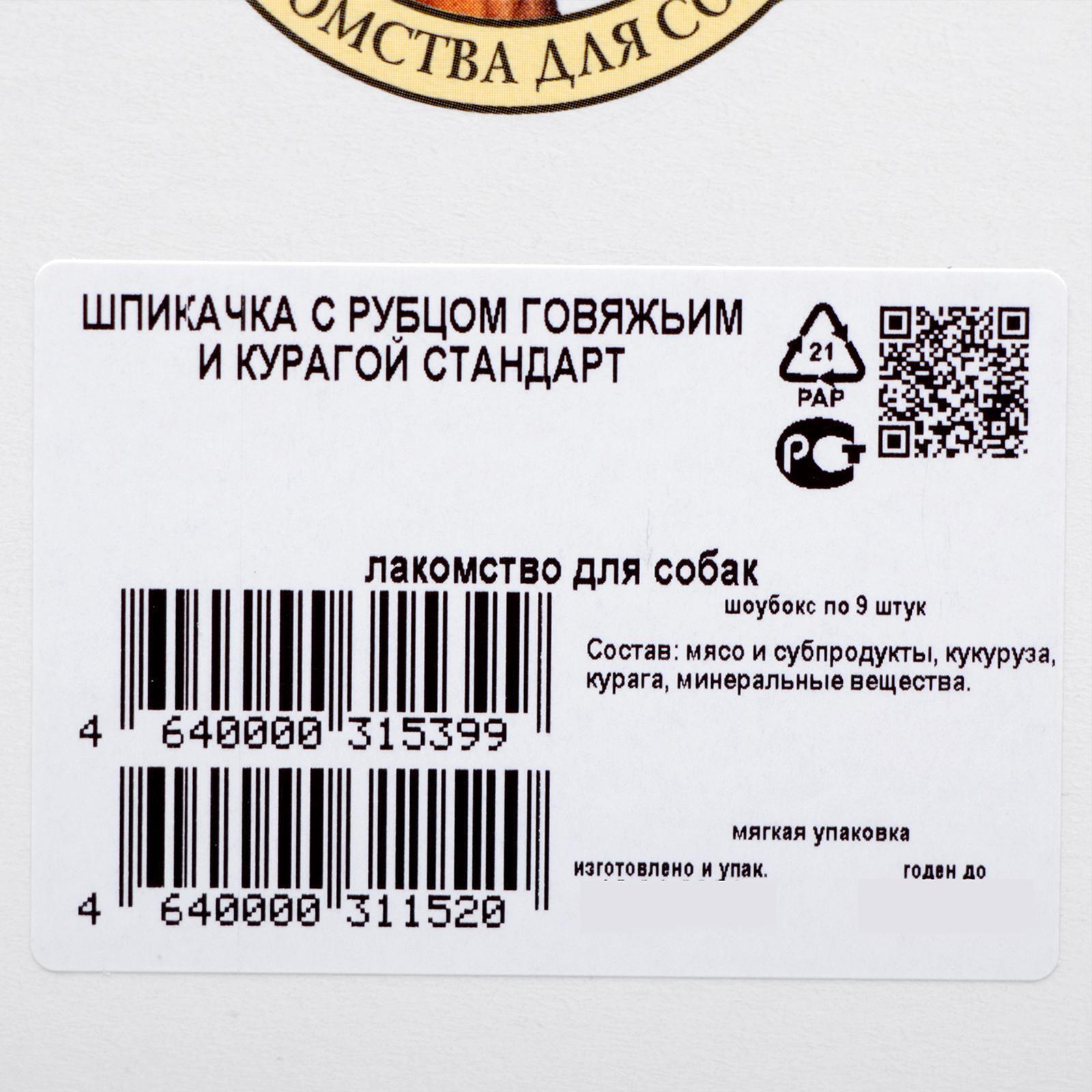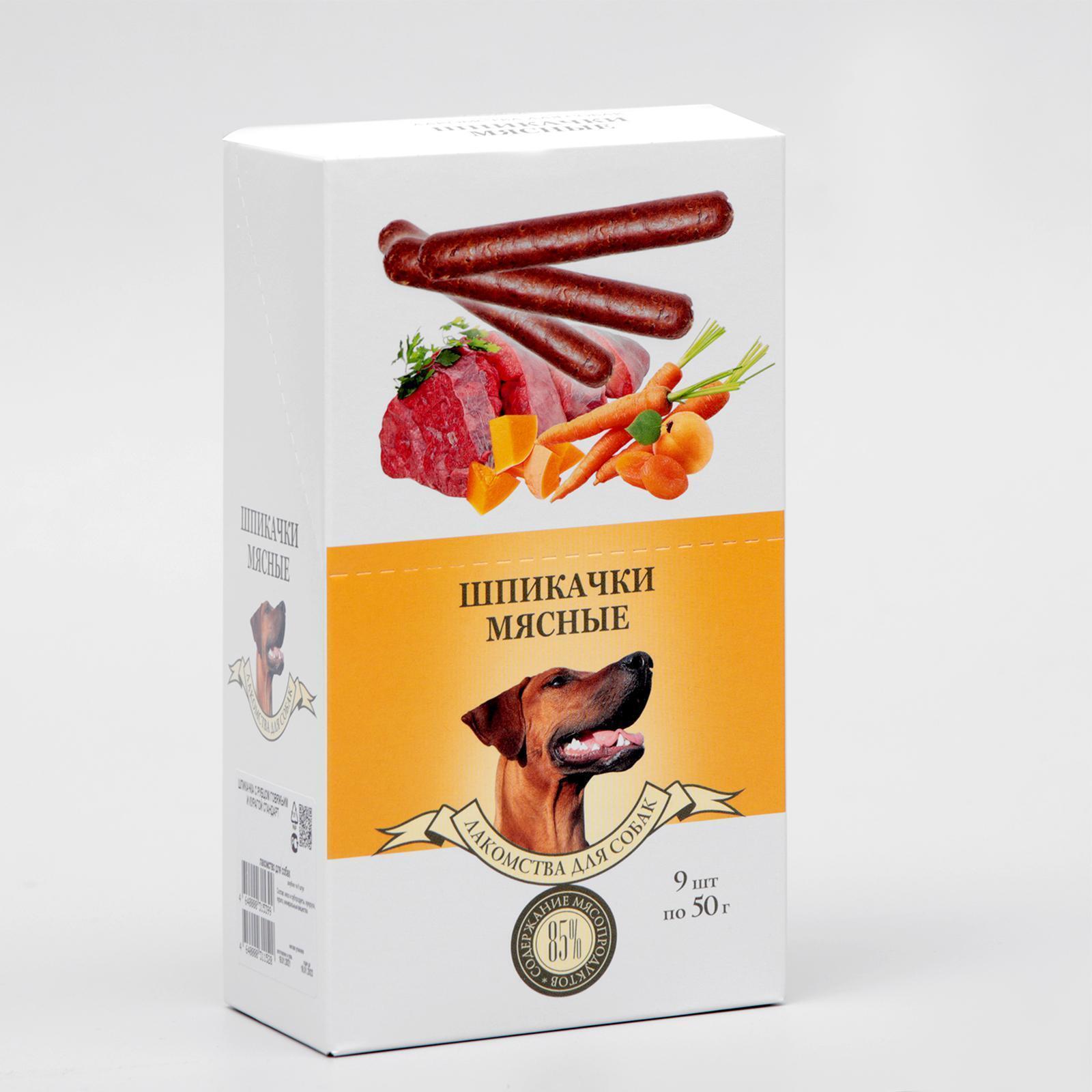 Колбаски для собак Шпикачка. Изготовлены из говяжьего мяса и мясных субпродуктов по колбасной технологии с добавлением таких полезных компонентов, как кукуруза, курага и говяжий рубец. Натуральный продукт, который не содержит красителей и консервантов.
