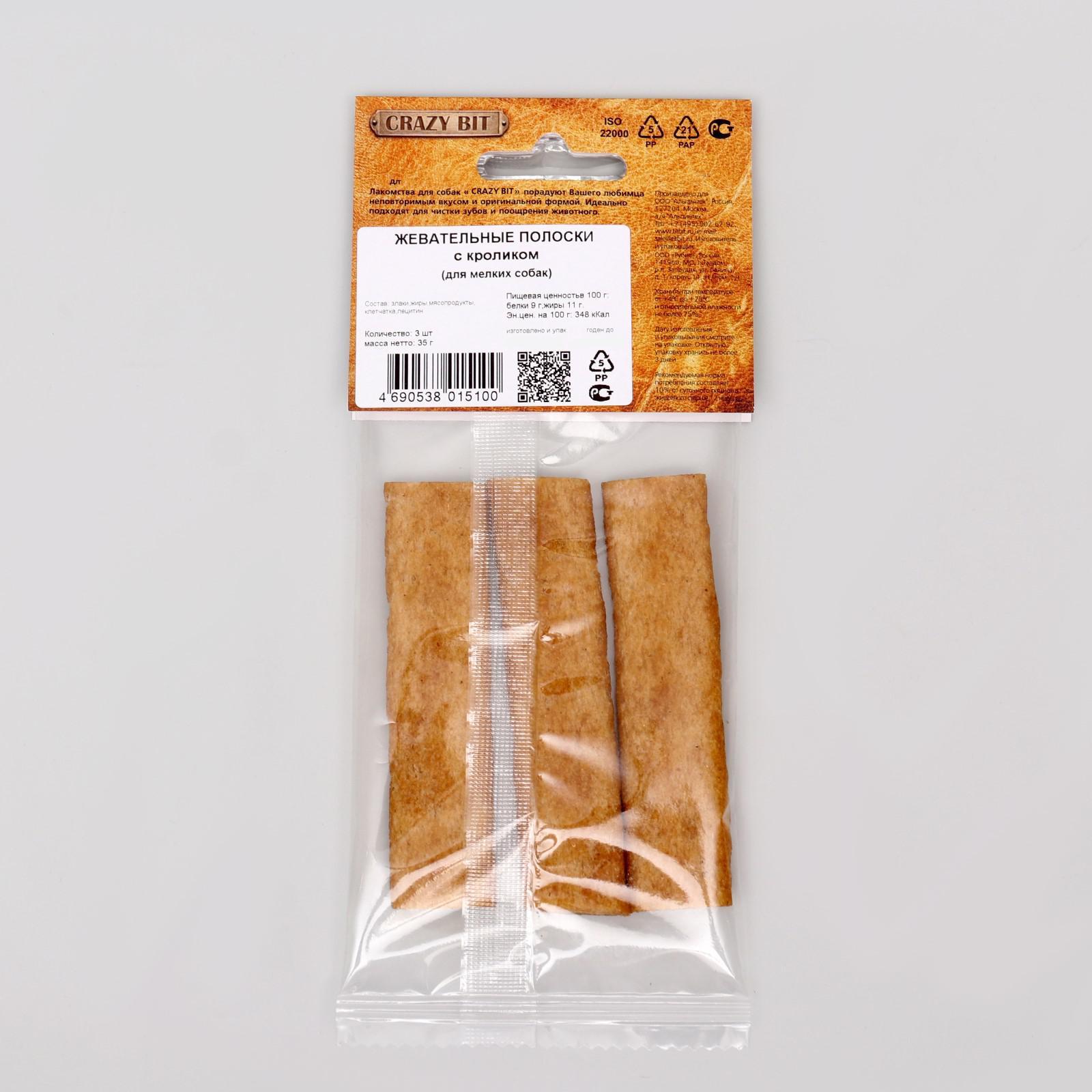 Жевательные полоски с кроликом (для мелких собак) Crazy Bit