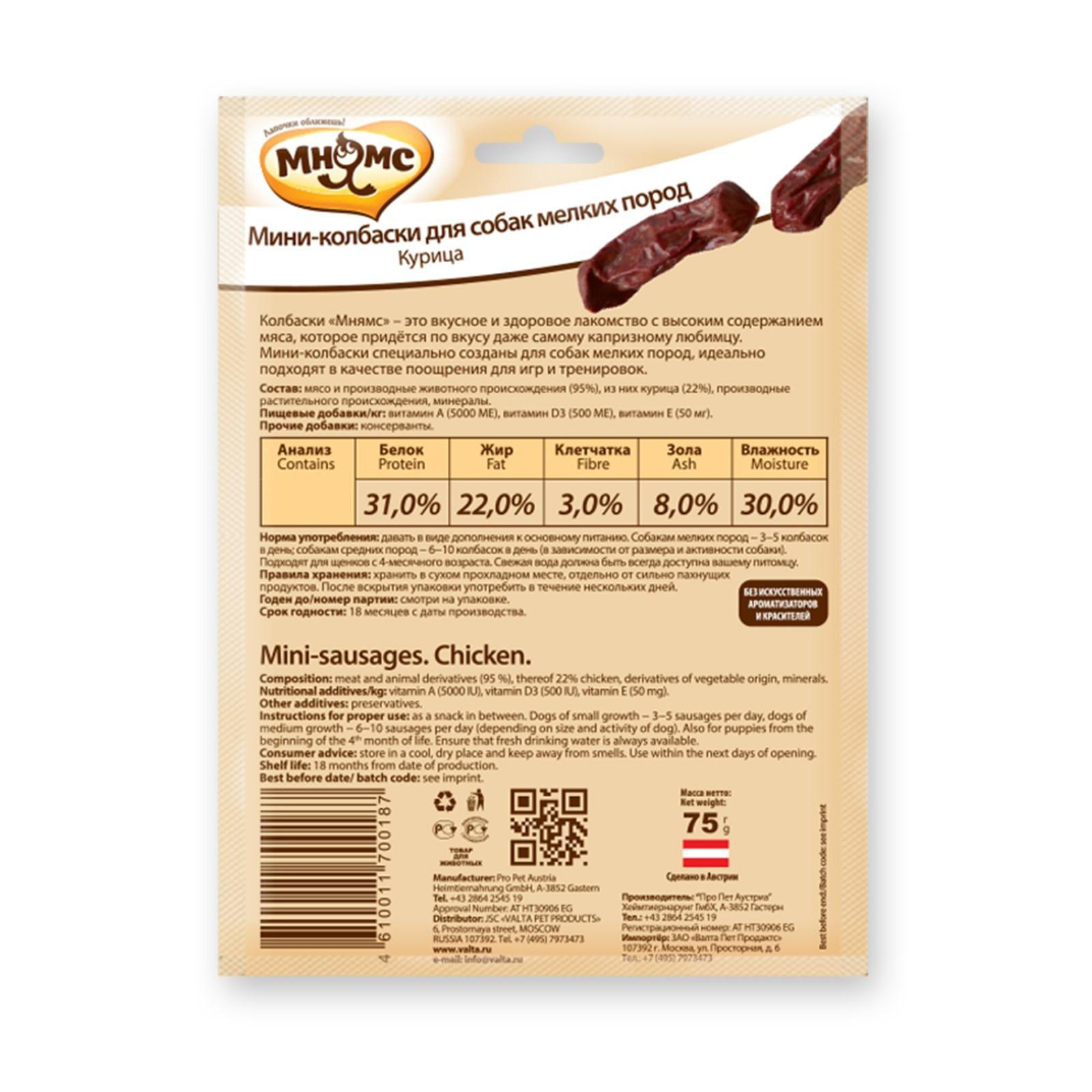 Мини-колбаски "Мнямс" для собак мелких пород, с курицей, 75 г.