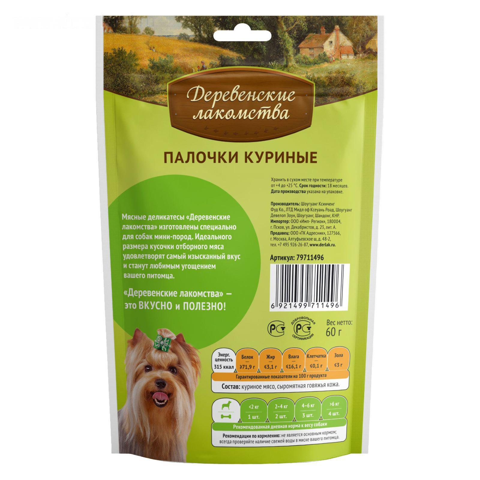 Лакомства деревенские "Палочки куриные" для собак мини-пород, 55 г