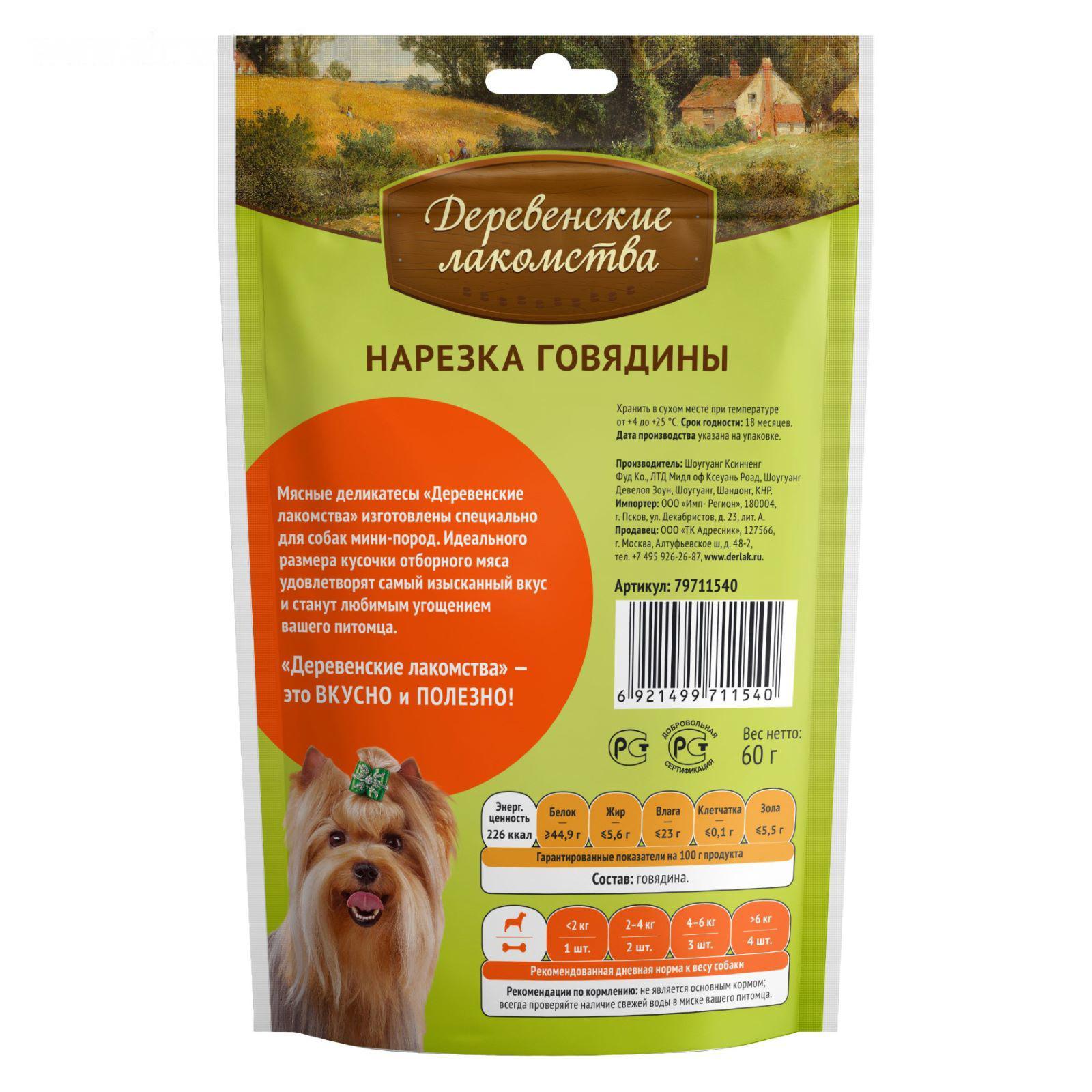 Нарезка из говядины "Деревенские лакомства" для собак мини-пород, 55 г