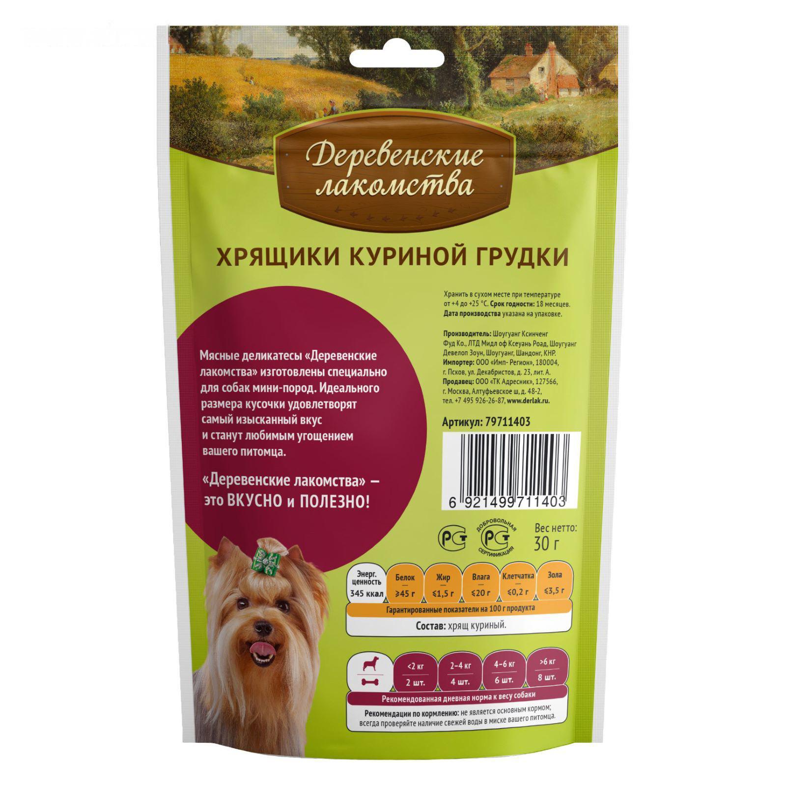 Хрящики "Деревенские Лакомства" для собак мини-пород, куриная грудка, 30 г