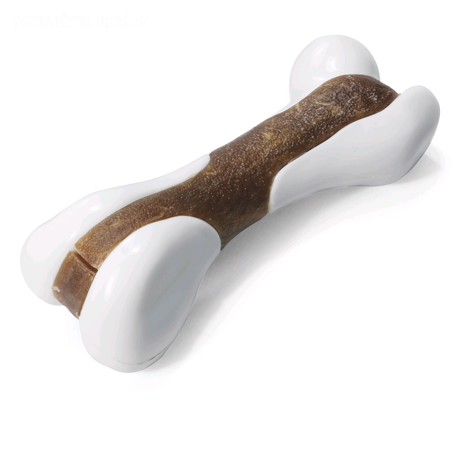 Косточка состоит из прочной нейлоновой основы, которая эффективно чистит зубы и массирует десны и съедобной части, изготовленной из пищевых ингредиентов и обладающая естественным запахом говядины.