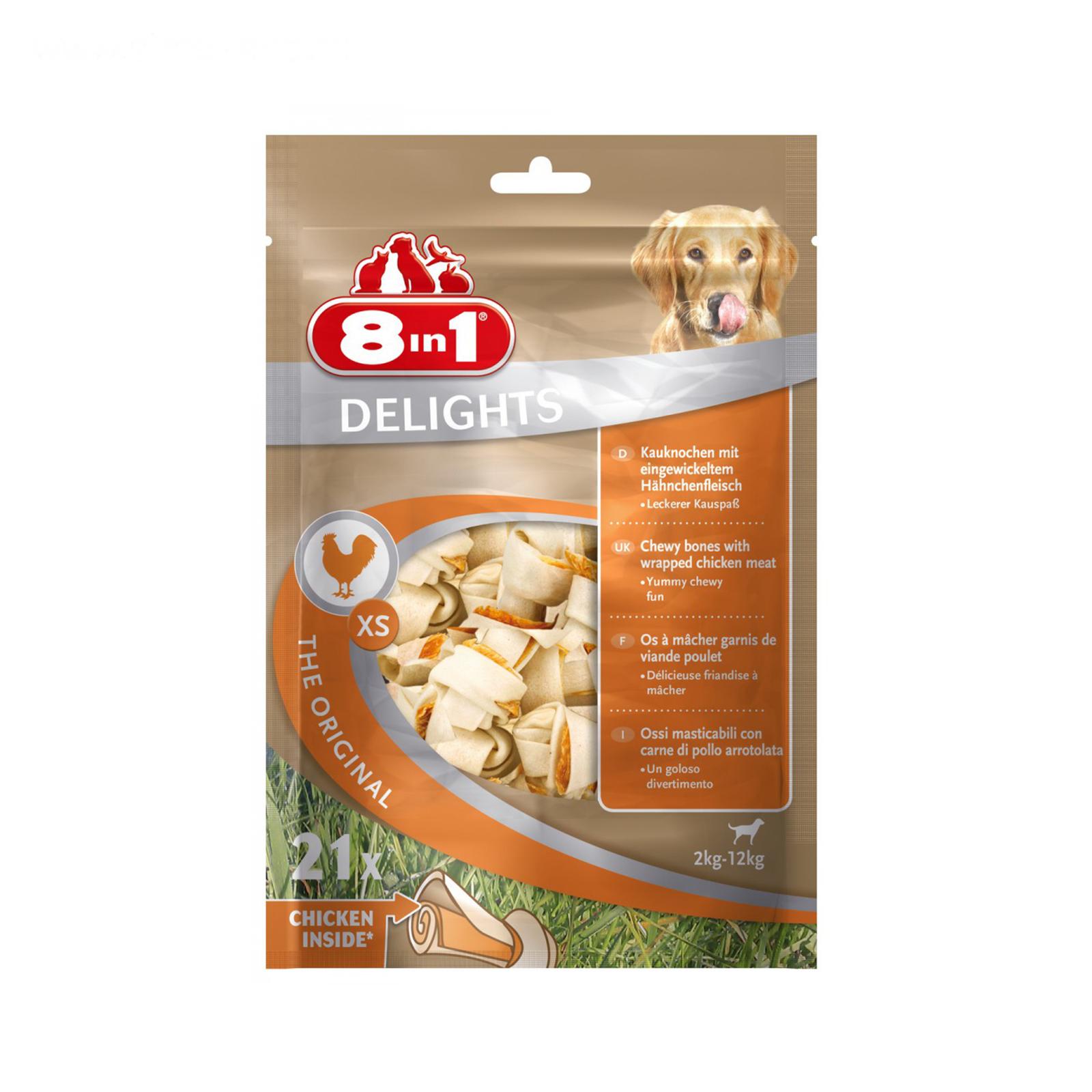 Косточки 8in1 DELIGHTS XS для мелких собак, с куриным мясом, 21х7,5 см (пакет)