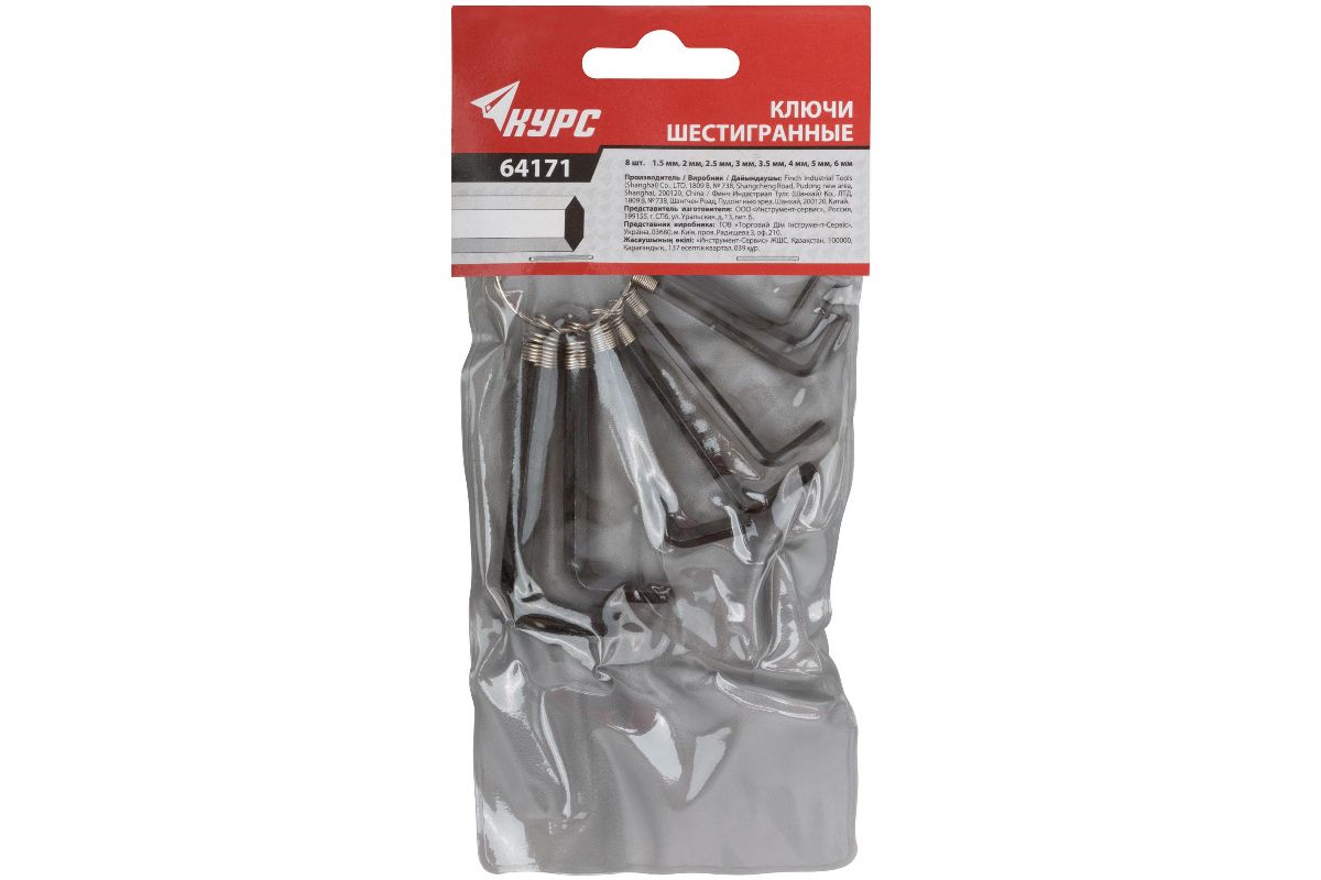 Набор ключей КУРС 64171 Hexagon, 1.5-6 мм, 8 шт., сталь