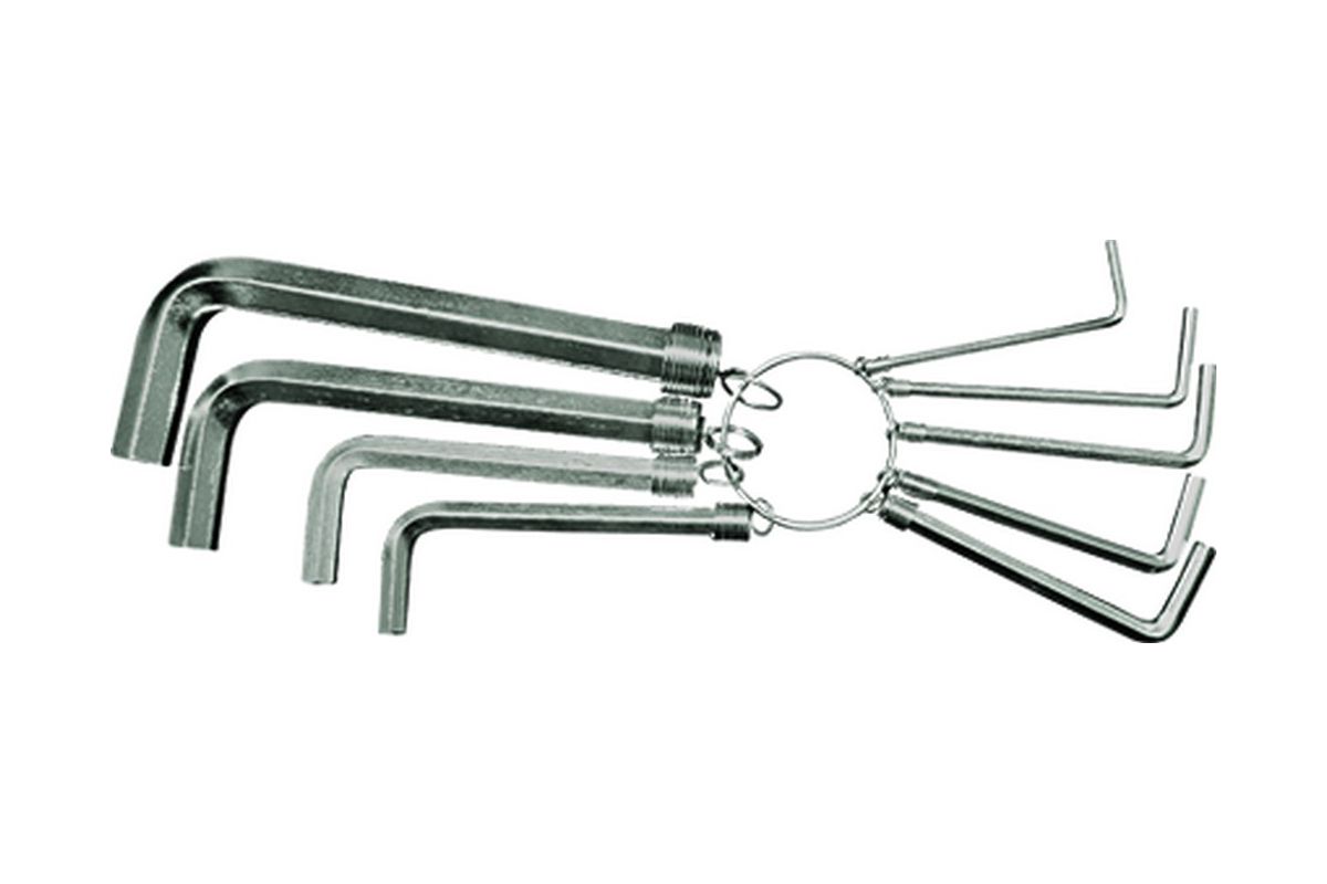 Наборы ключей-шестигранников для работы с крепежом, оснащенным внутренним шестигранным гнездом. Ключи изготовлены из углеродистой стали. Твердость рабочей части 56–60 HRc. В комплектацию набора 11266 входят шестигранные ключи размером 1,5–2,0–2,5–3,0–3,5–