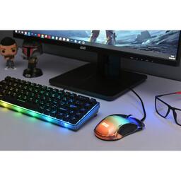 Модель 2E GAMING MG345 в прозорому корпусі має потужний сенсор з роздільною здатністю до 12800 DPI, легкий кабель з паракорду, перемикачі Huano з ресурсом 10 млн. натискань і яскраве RGB-підсвічування. За допомогою фірмового ПЗ з легкістю можна виконати тонкі налаштування для надскладних задач. Зручна ергономіка миші забезпечує комфорт і легкість керування навіть під час тривалих сесій. Футуристичний трендовий дизайн миші MG345 і магія пульсації світла створять неперевершену атмосферу гри.