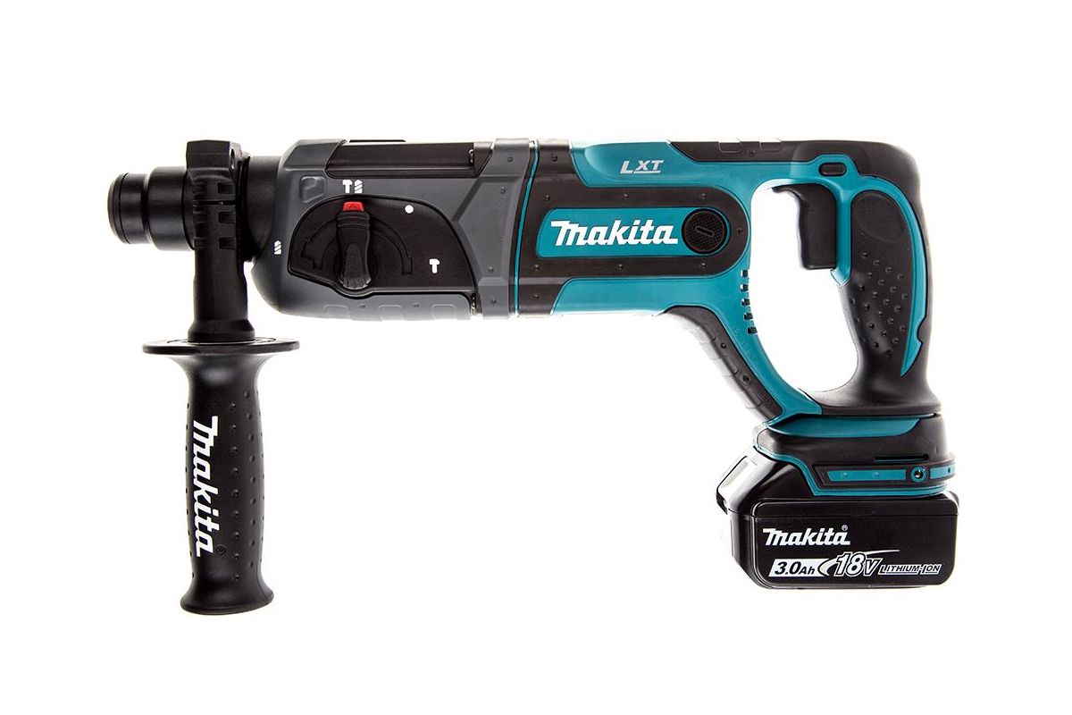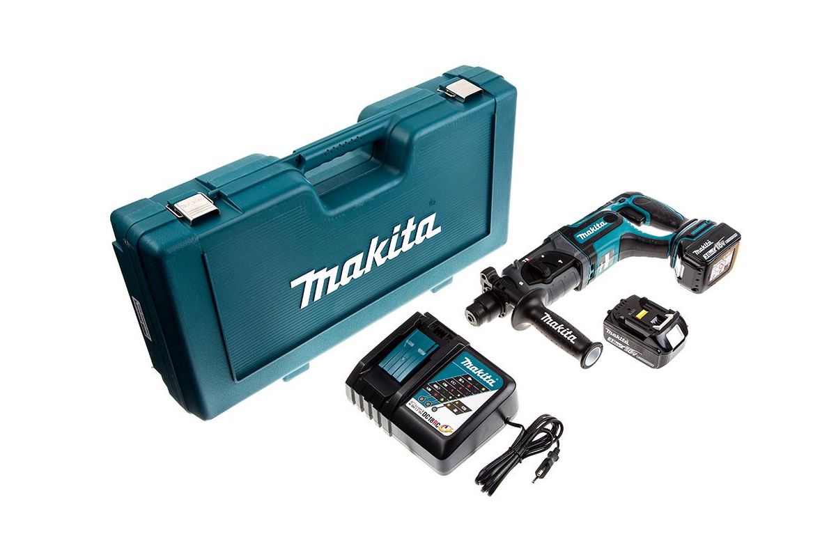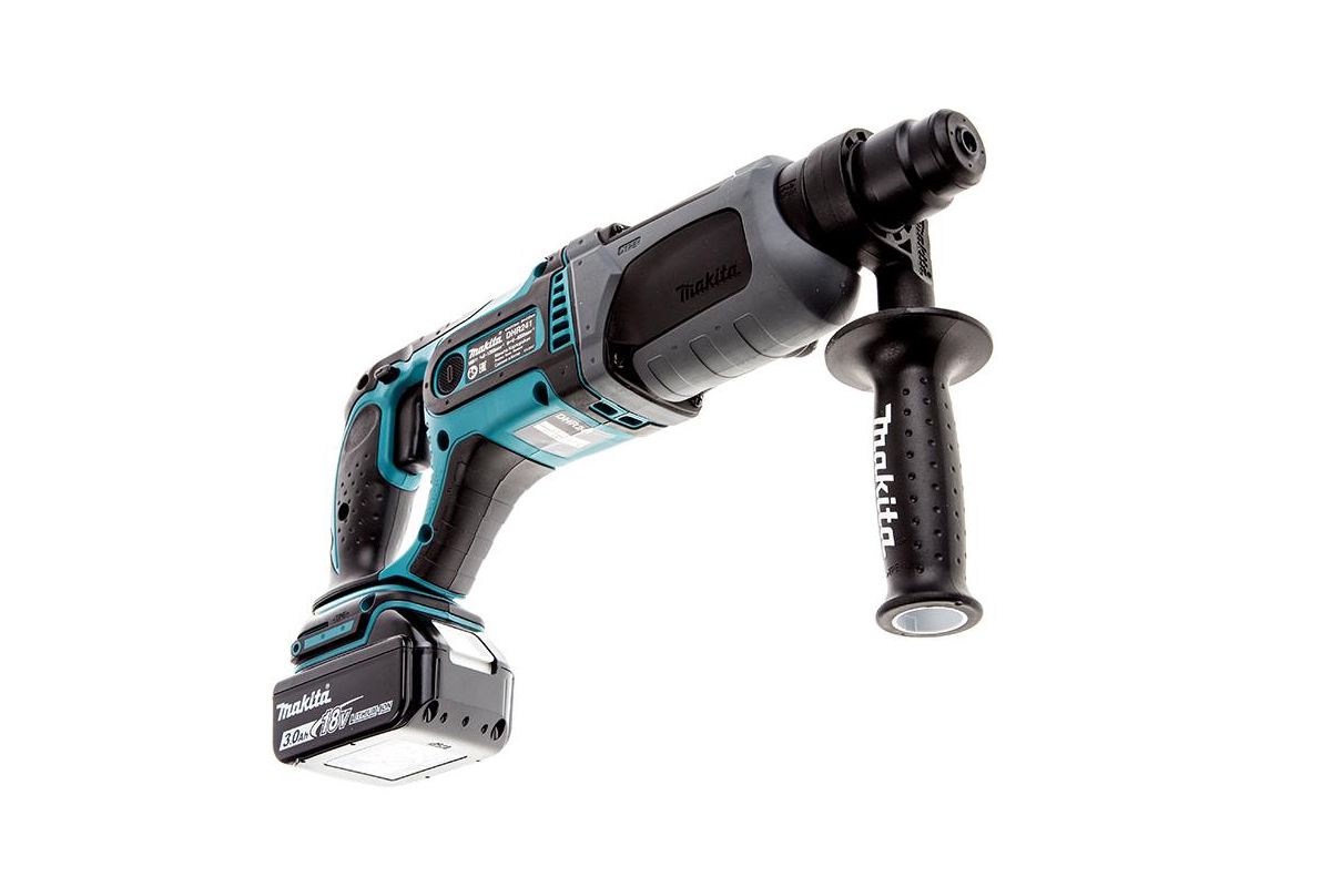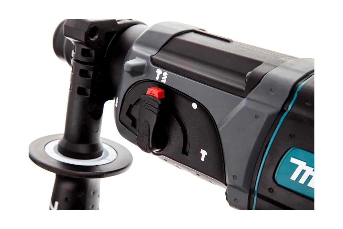 Аккумуляторный перфоратор Makita DHR241RFE имеет три режима работы: сверление, сверление с ударом, долбление. Чтобы выбрать один из них, необходимо повернуть переключатель, находящийся с левой стороны инструмента, в нужную сторону. Благодаря патрону SDS-plus, легко менять оснастку. Регулирование оборотов происходит с помощью электроники, достаточно увеличить или уменьшить силу нажатия на пусковую кнопку. Модель поставляется с 2 аккумуляторами в чемодане.