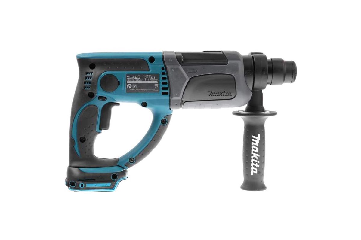 - Противоскользящая обрезиненная боковая рукоятка - для хвата аккумуляторного перфоратора Makita DHR202Z обеими руками.