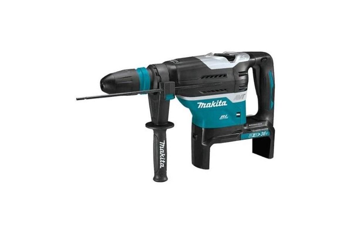 Аккумуляторный перфоратор Makita DHR400ZK с большой силой удара (8 Дж) справляется с крепким материалом. Инструмент оснащен антивибрационной технологией (AVT) для сокращения воздействия на здоровье. Защита о пыли и влаги увеличивает срок пользования прибором. Модель работает от двух аккумуляторов напряжением по 18 В (приобретаются дополнительно).