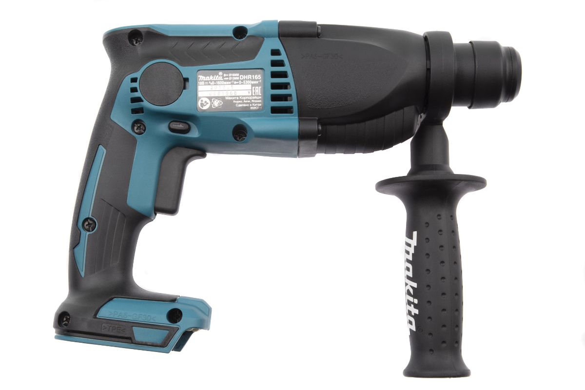 - Обрезиненная боковая рукоятка - для надежного хвата аккумуляторного перфоратора Makita DHR165Z;