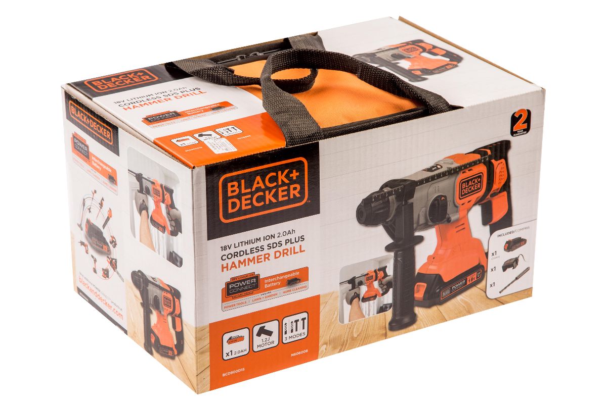 Перфоратор BLACK & DECKER BCD900D1S-QW аккумуляторный, SDS Plus, с АКБ 2Ач и ЗУ, сумка