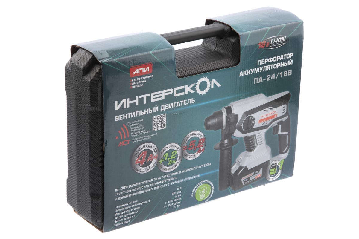 Акк. Перфоратор ИНТЕРСКОЛ ПА-24/18В (579.4.1.70) Li-ion АПИ (кейс, 1 аккум. 4Ач, ЗУ)
