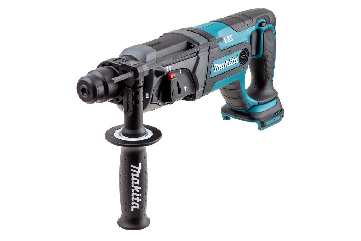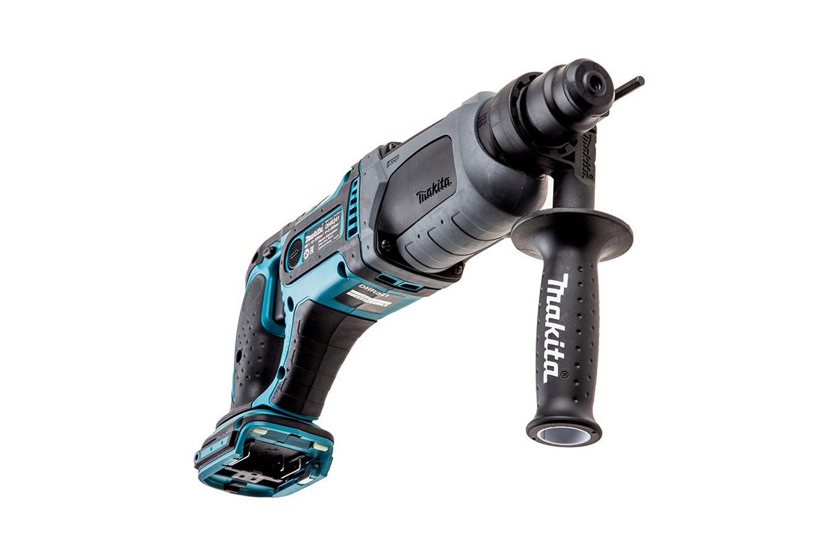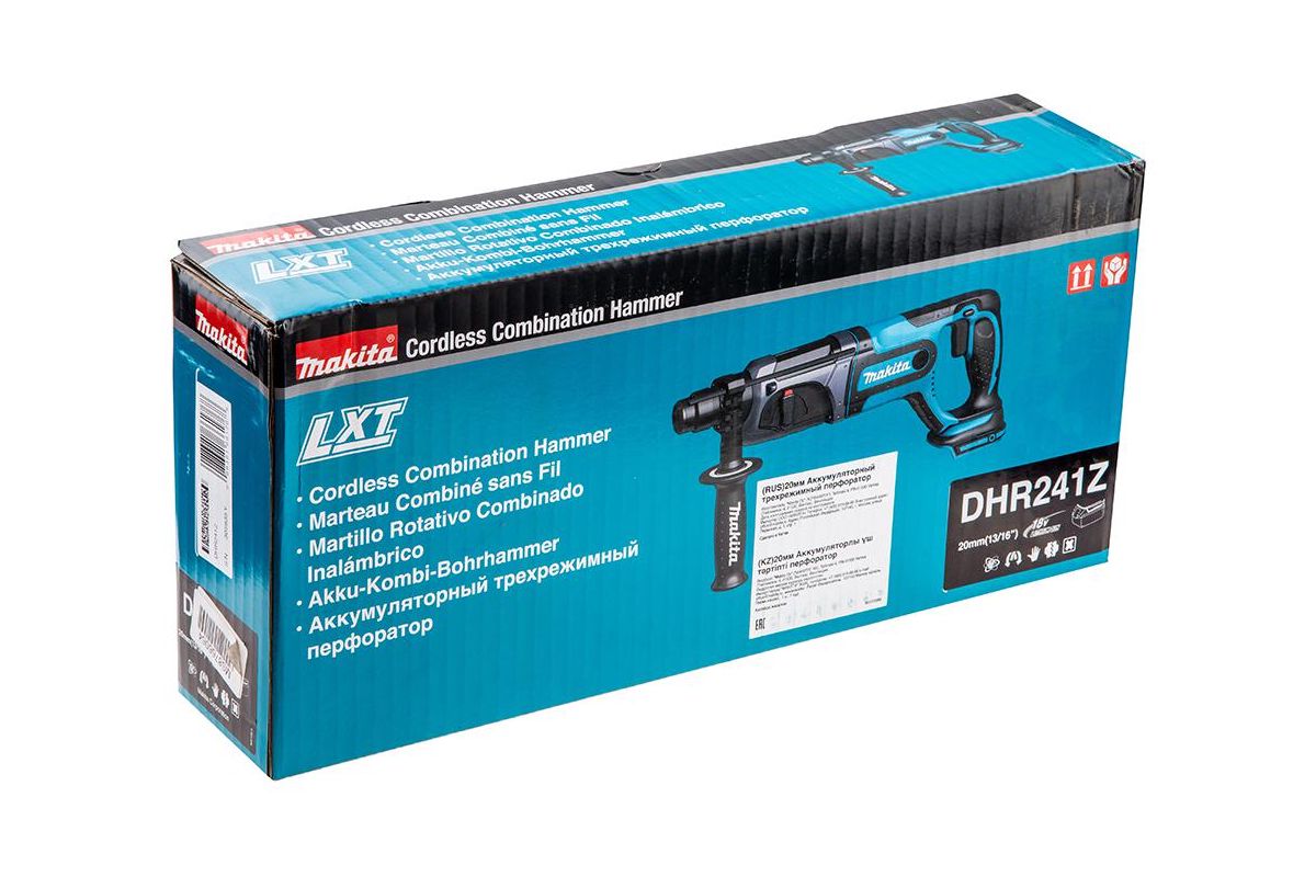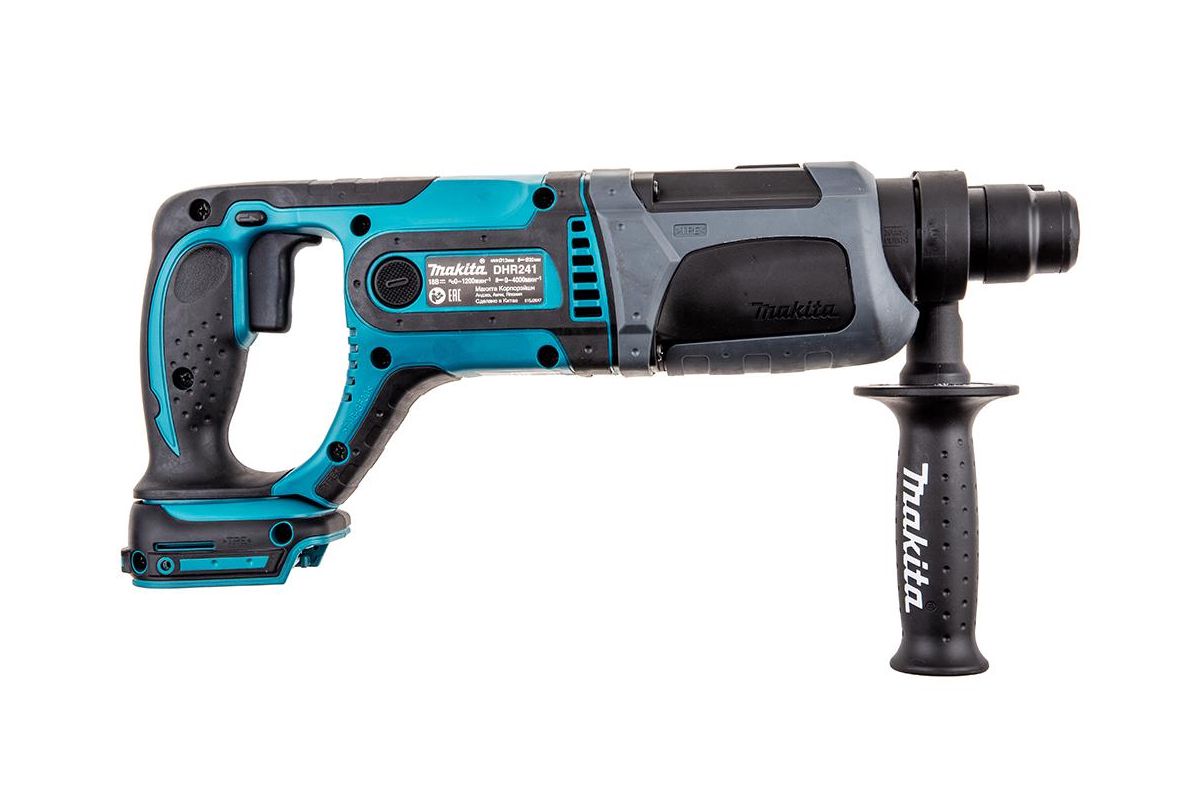 MAKITA DHR241Z – трёхрежимный аккумуляторный перфоратор. Питается от аккумулятора 18 В (аккумулятор и зарядное устройство в комплект не входят, вы можете приобрести их отдельно или использовать уже имеющиеся). Сила удара 1,9 Дж. Максимальный диаметр сверления в дереве 26 мм, в бетоне – 20 мм, в металле – 13 мм, с использованием коронки – 68 мм. Вес 3,1 кг. Пригодится для ремонта и демонтажных работ, удаления кафельной плитки и прокладки коммуникаций.