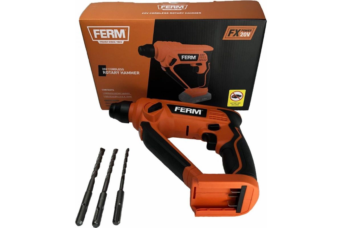 Перфоратор FERM HDM1052 Li-Ion 20 В Solo, SDS-Plus, 1,3 Дж., набор сверл 3 шт., без АКБ и ЗУ