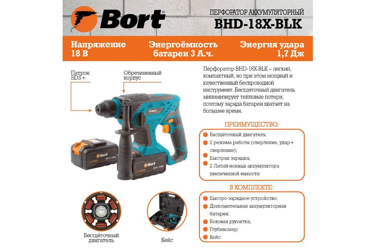 Перфоратор аккумуляторный BORT BHD-18X-BLK (2x3,0А.ч)