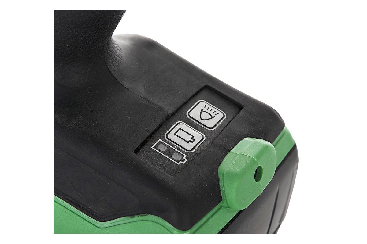 Перфоратор крайне удобен в использовании. Благодаря светодиодной подсветке, им можно работать в слабоосвещенных местах. Литиево-ионная батарея позволит работать долгое время без подзарядки (время восстановления заряда аккумулятора — 45 мин; в комплекте — 2 аккумулятора). Уровень заряда батареи выводится на индикатор на корпусе. Аккумуляторы подобного типа не добавляют лишнего веса, что очень важно при продолжительной работе.