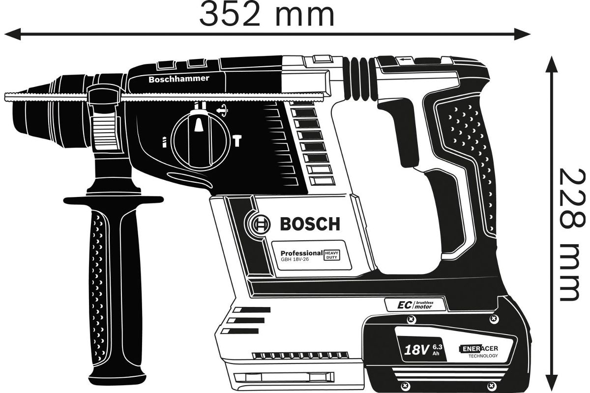 GBH 18V-26 входит в аккумуляторную семью 18В Bosch Professional и совместим со всеми аккумуляторами из данной линейки.