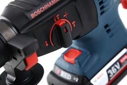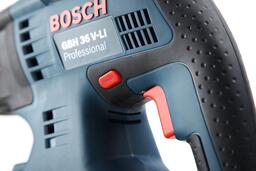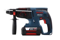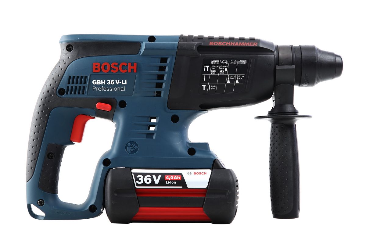 BOSCH GBH 36 V-LI Professional — высокопроизводительный и надежный перфоратор для интенсивной эксплуатации. Работает от LiION аккумулятора емкостью 4 Ач. Особенности модели: предохранительная муфта, реверс, эргономичное исполнение, дополнительная рукоятка. Максимальное число ударов в минуту — 4260. Сила удара — 2,8 Дж.