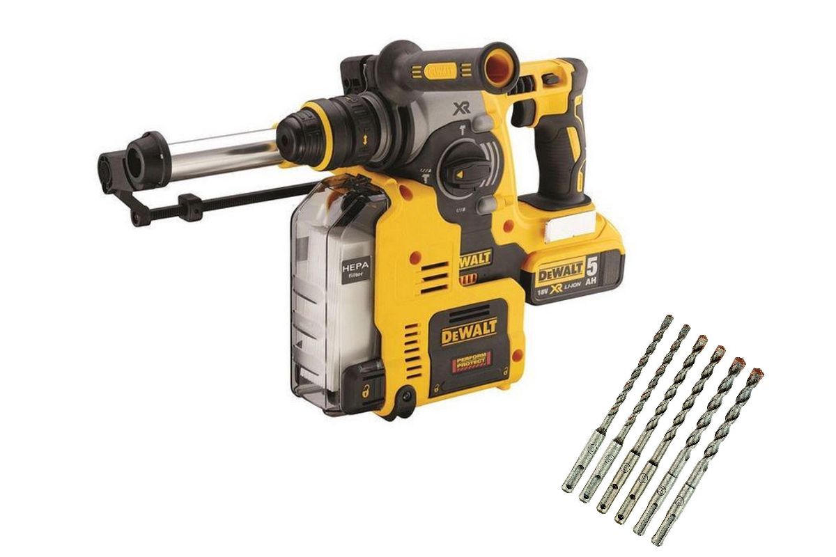 В состав набора входят: Бесщеточный перфоратор DEWALT DCH275P2-QW SDS-plus, 400 Вт, Набор буров DeWalt DT9396-QZ SDS+, 5шт