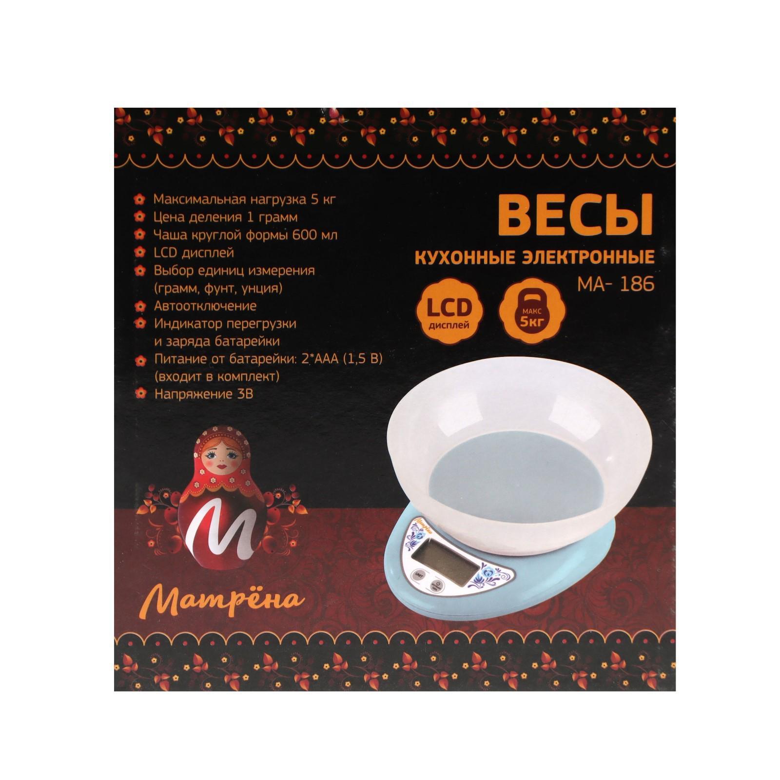 Весы кухонные МАТРЁНА МА-186, электронные, до 5 кг, голубые