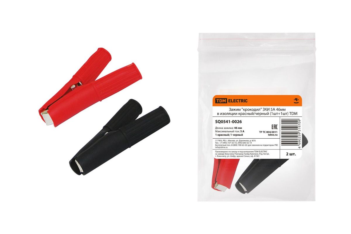 Зажим TDM SQ0541-0026 ''крокодил'' ЗКИ 5А 46мм в изоляции красный/черный (1шт+1шт)