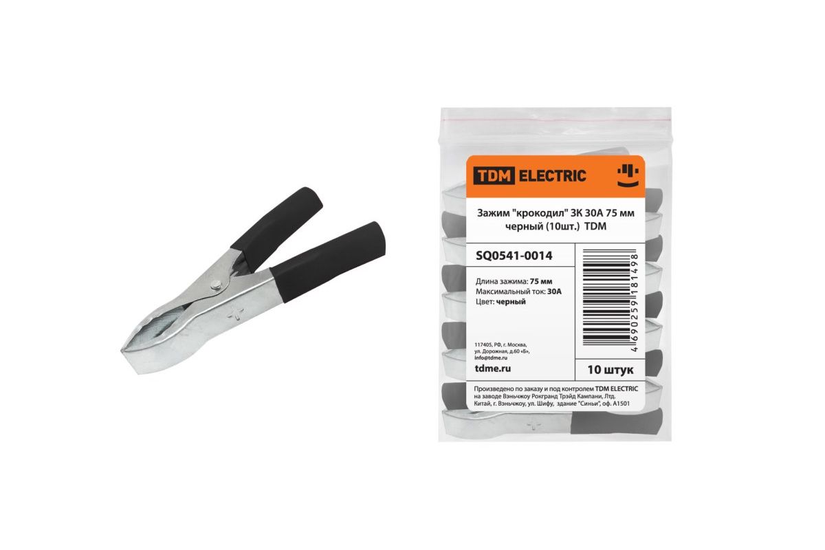 Зажим TDM SQ0541-0014 ''крокодил'' ЗК 30а 75мм черный 10шт.