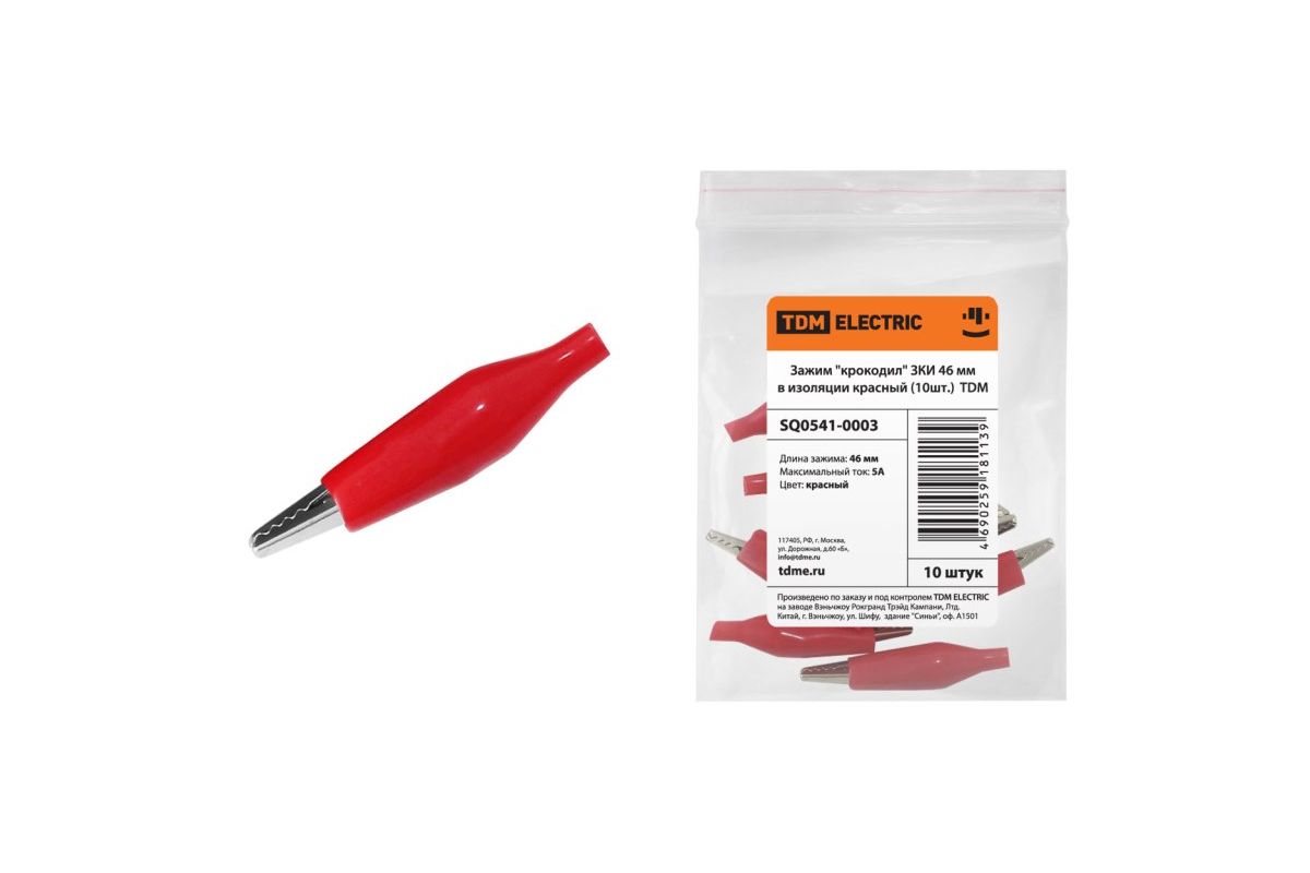 Зажим TDM SQ0541-0003 ''крокодил'' ЗКИ 5а 46мм в изоляции красный 10шт.