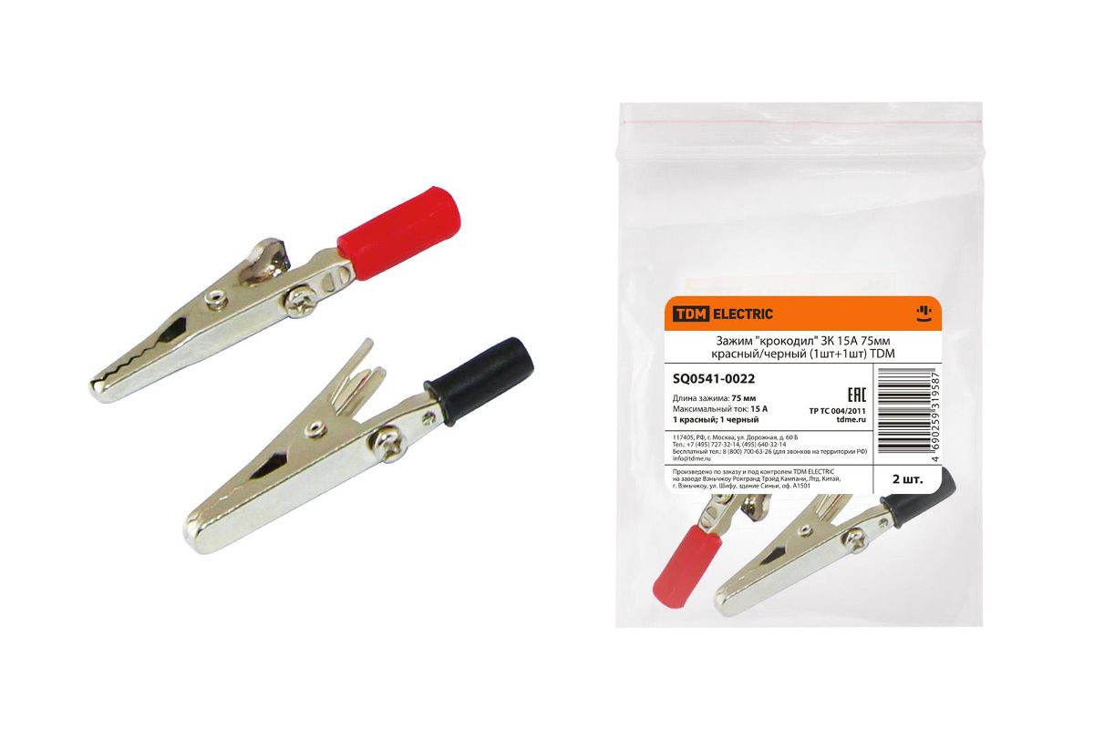 Зажим TDM SQ0541-0022 ''крокодил'' ЗК 15А 75мм красный/черный (1шт+1шт)