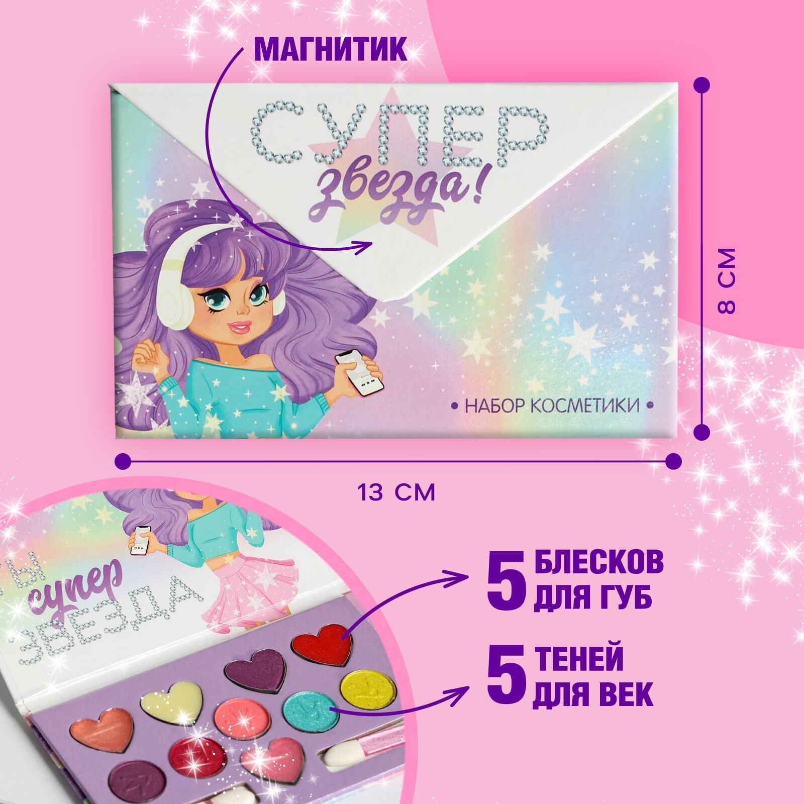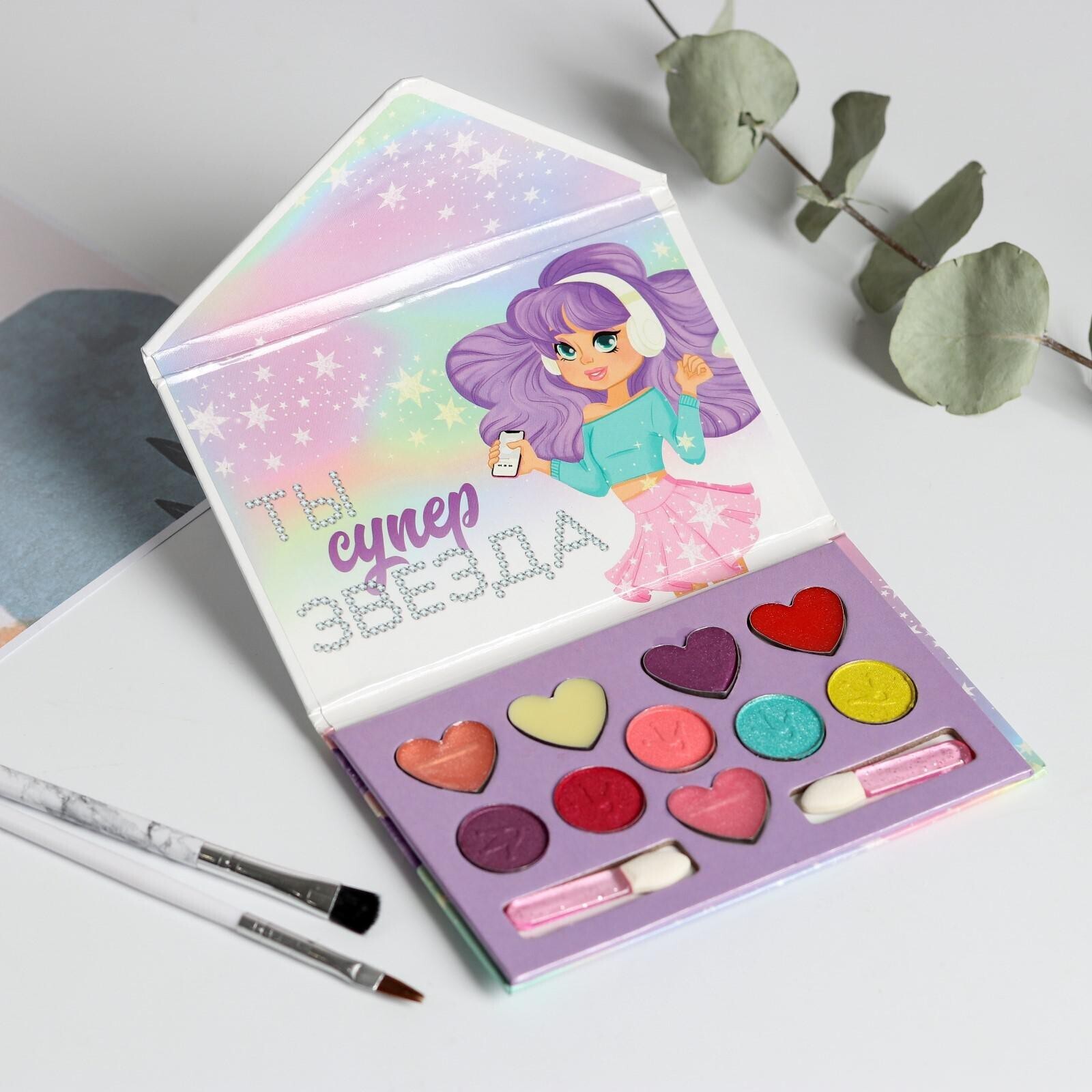 Набор косметики для девочки «Супер звезда!», тени 5 цв по 1,3 гр, блеск 5 цв по 0,8 гр