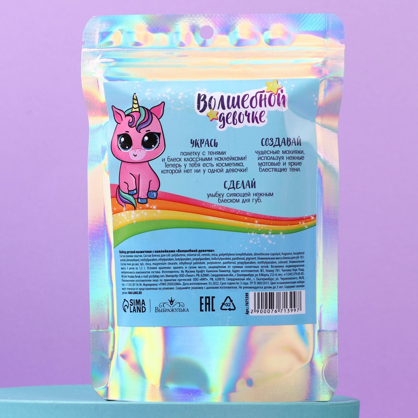 Набор детской косметики с наклейками «Волшебной девочке»