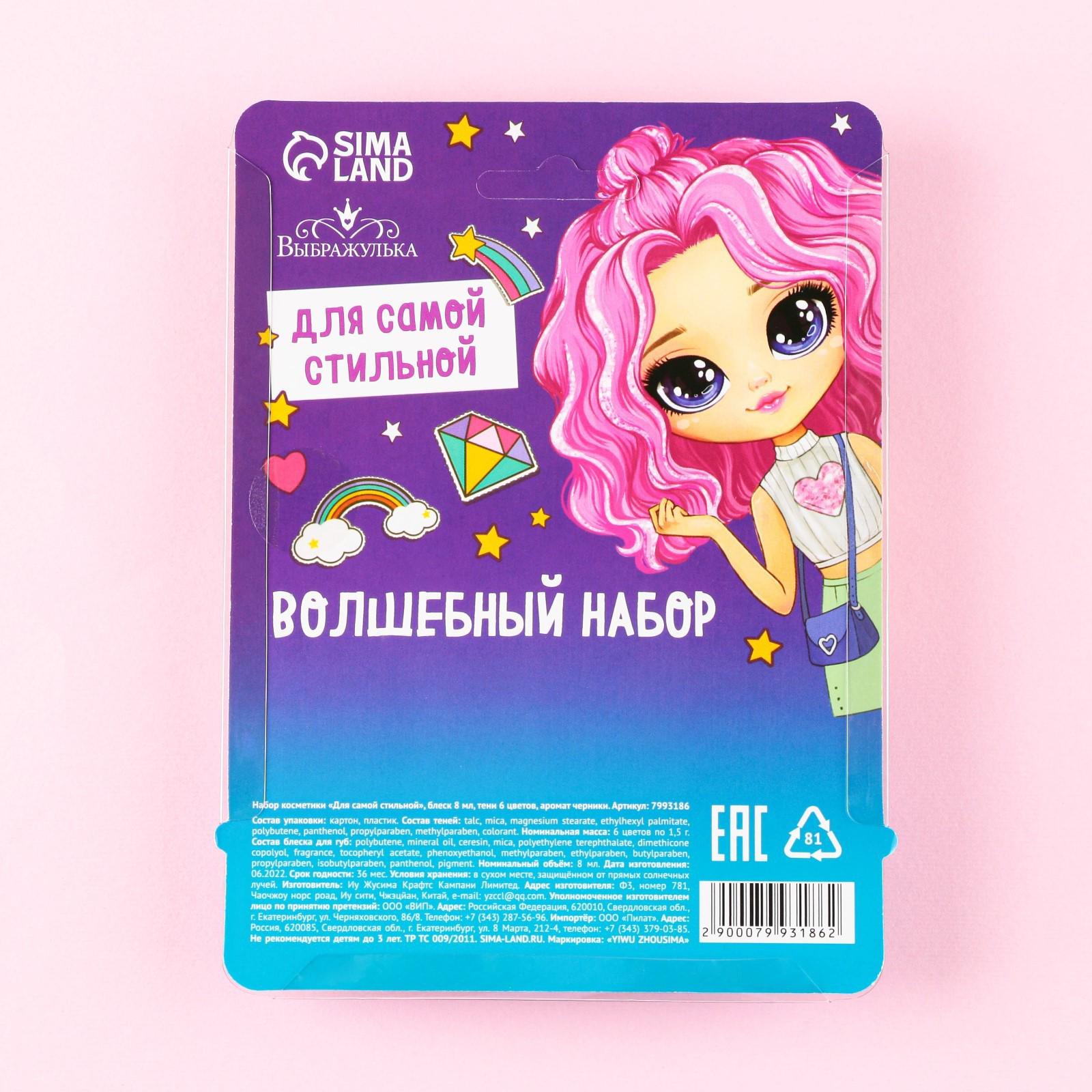 Набор косметики «Для самой стильной», блеск 8 мл, тени 6 цв, аромат черника