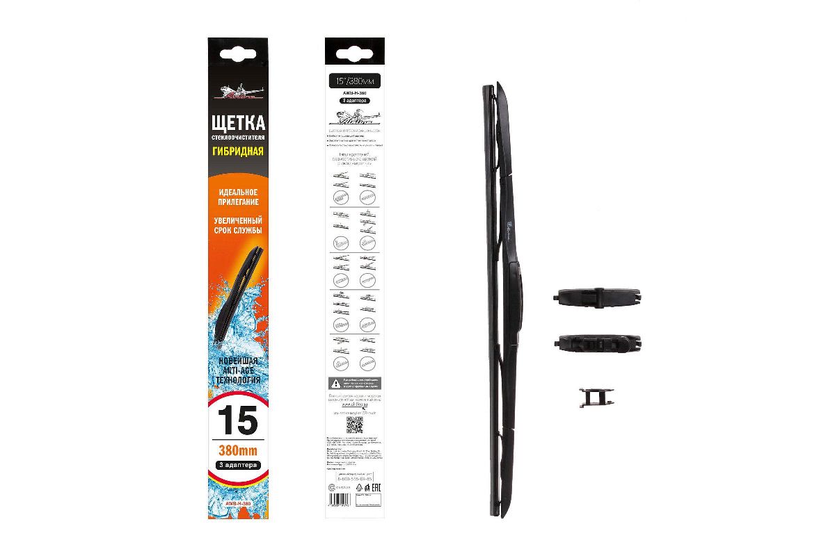 Щётка стеклоочистителя гибридная AIRLINE AWB-H-380 380 мм (15'') 8 адаптеров