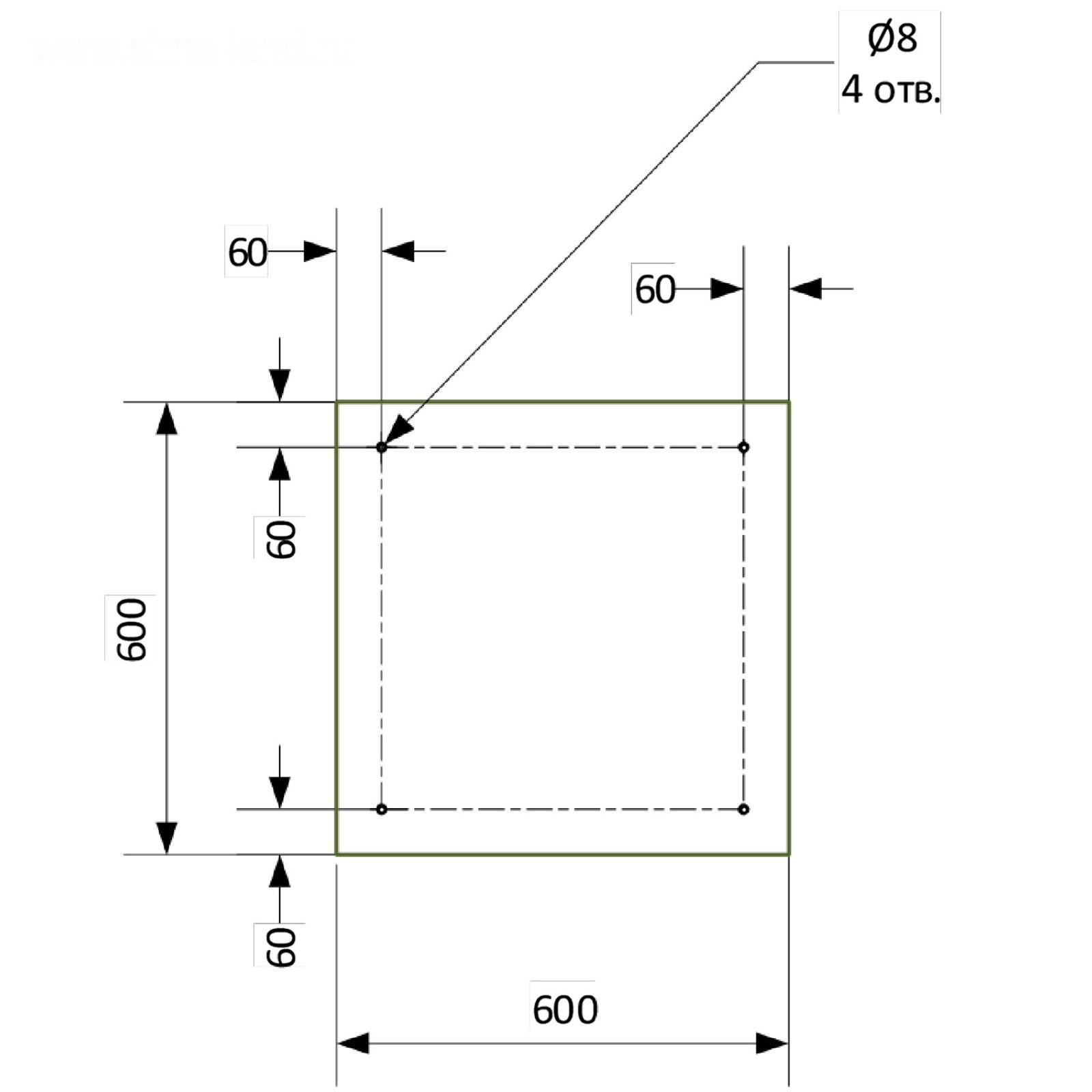 Кухонный фартук, 600 × 600 мм, закалённое стекло 4 мм, 4 отверстия под крепёж