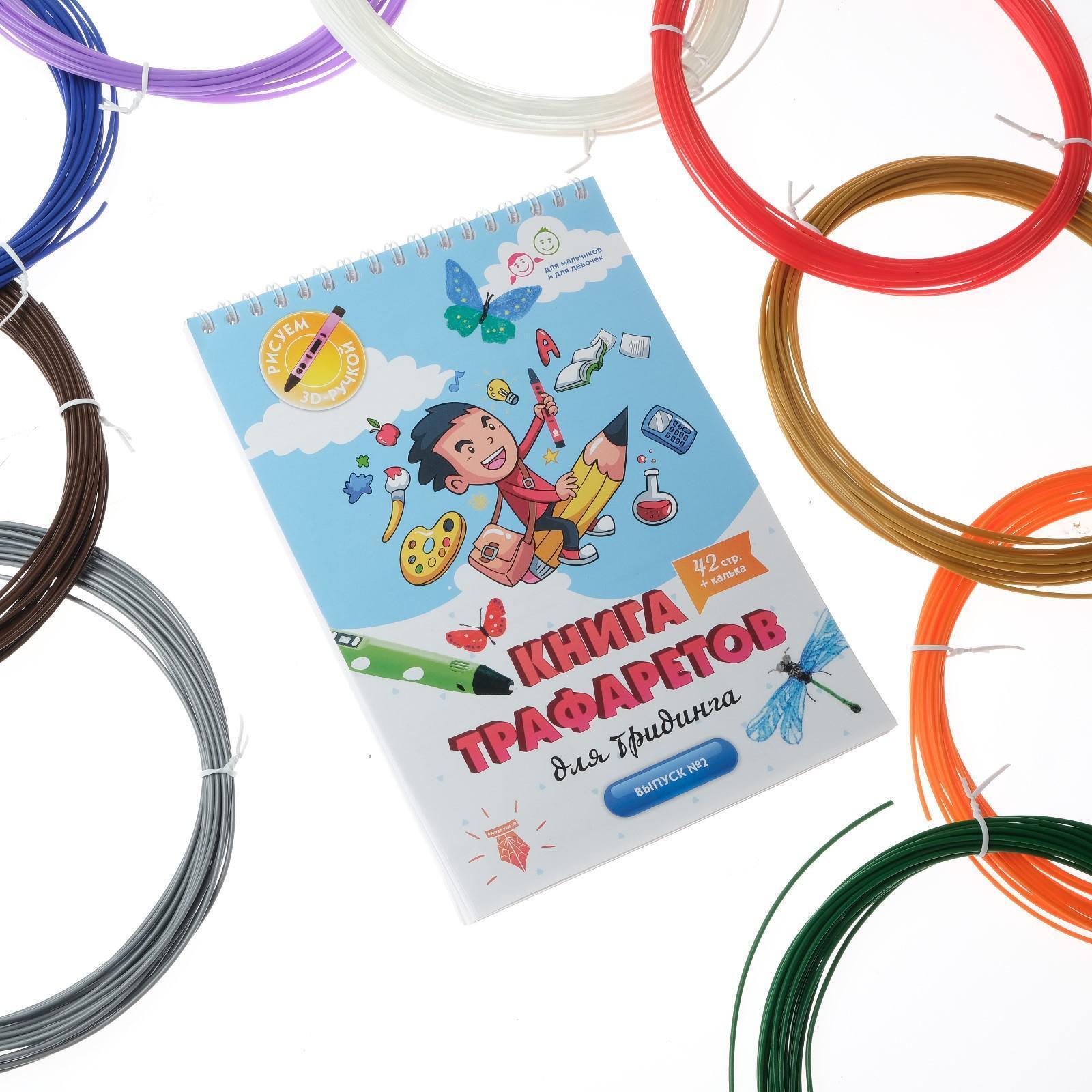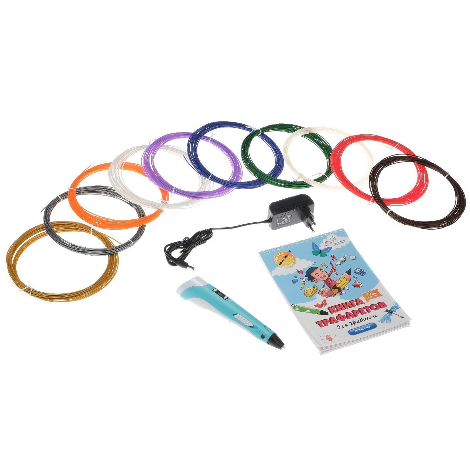 УЦЕНКА Подарочный набор, 3D ручка + трафарет + пластик PLA 10 цветов по 10 м (голубой светящийся)