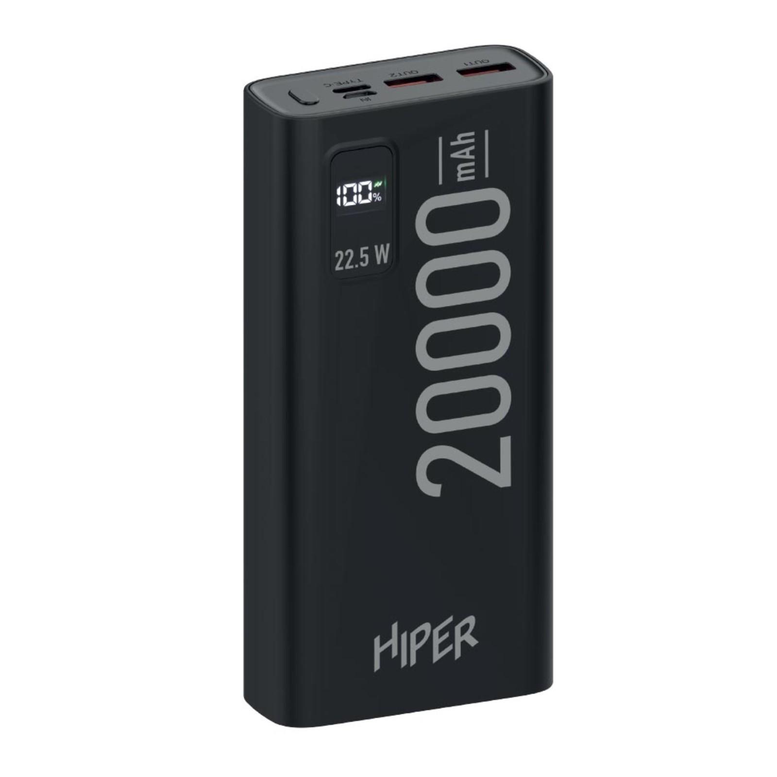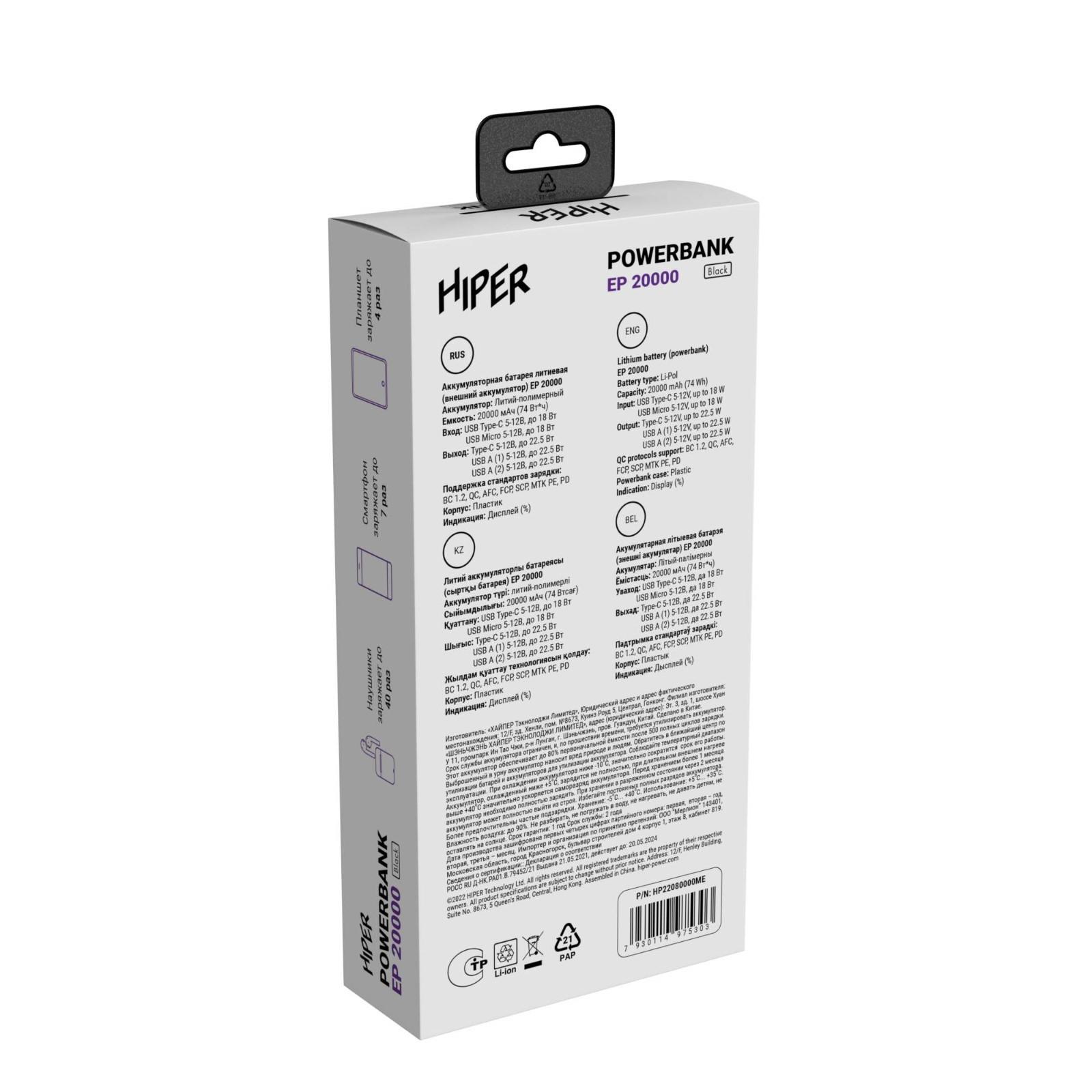 Внешний аккумулятор Hiper EP 20000, 20000 мАч, 3A, 2 USB, QC, PD, дисплей, черный