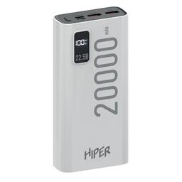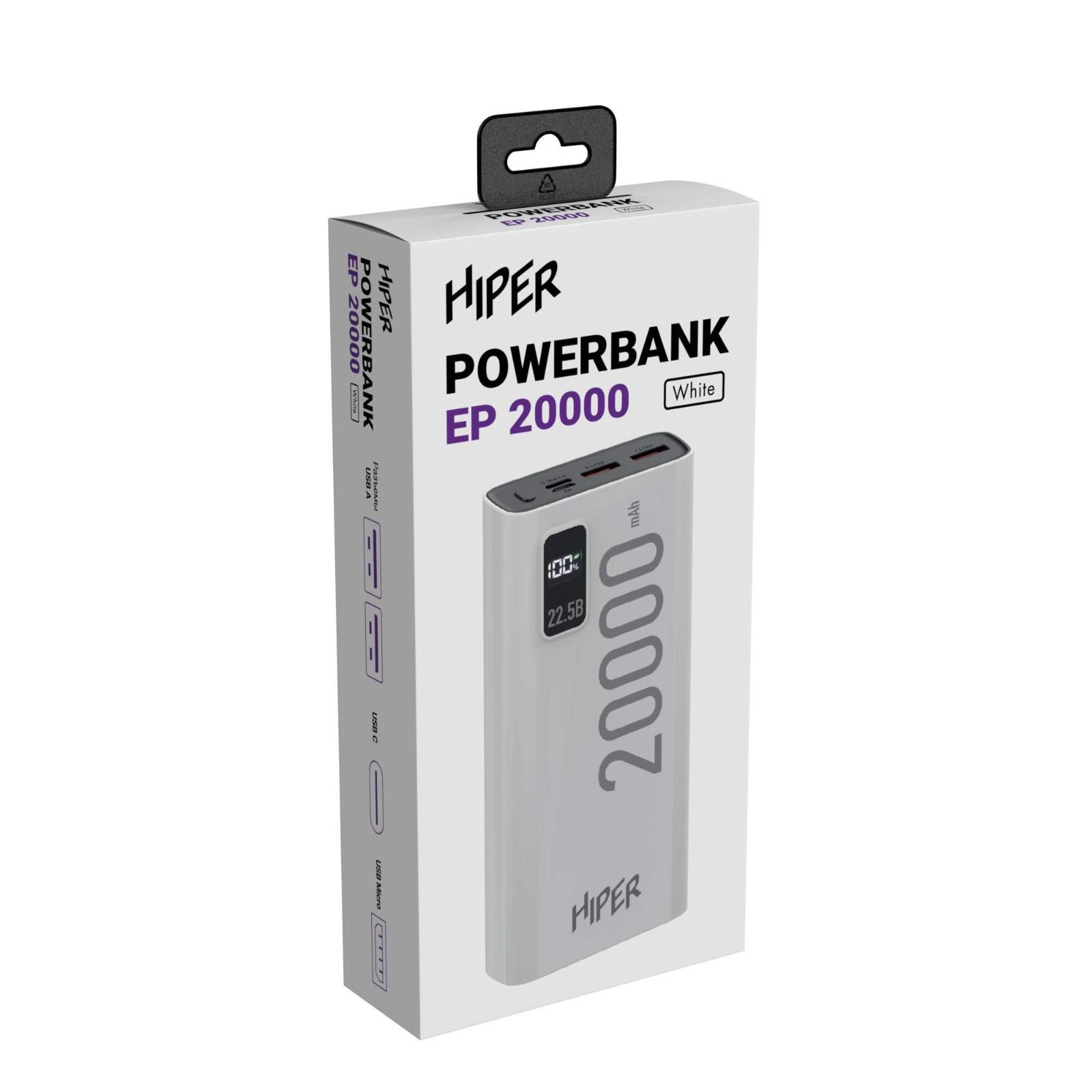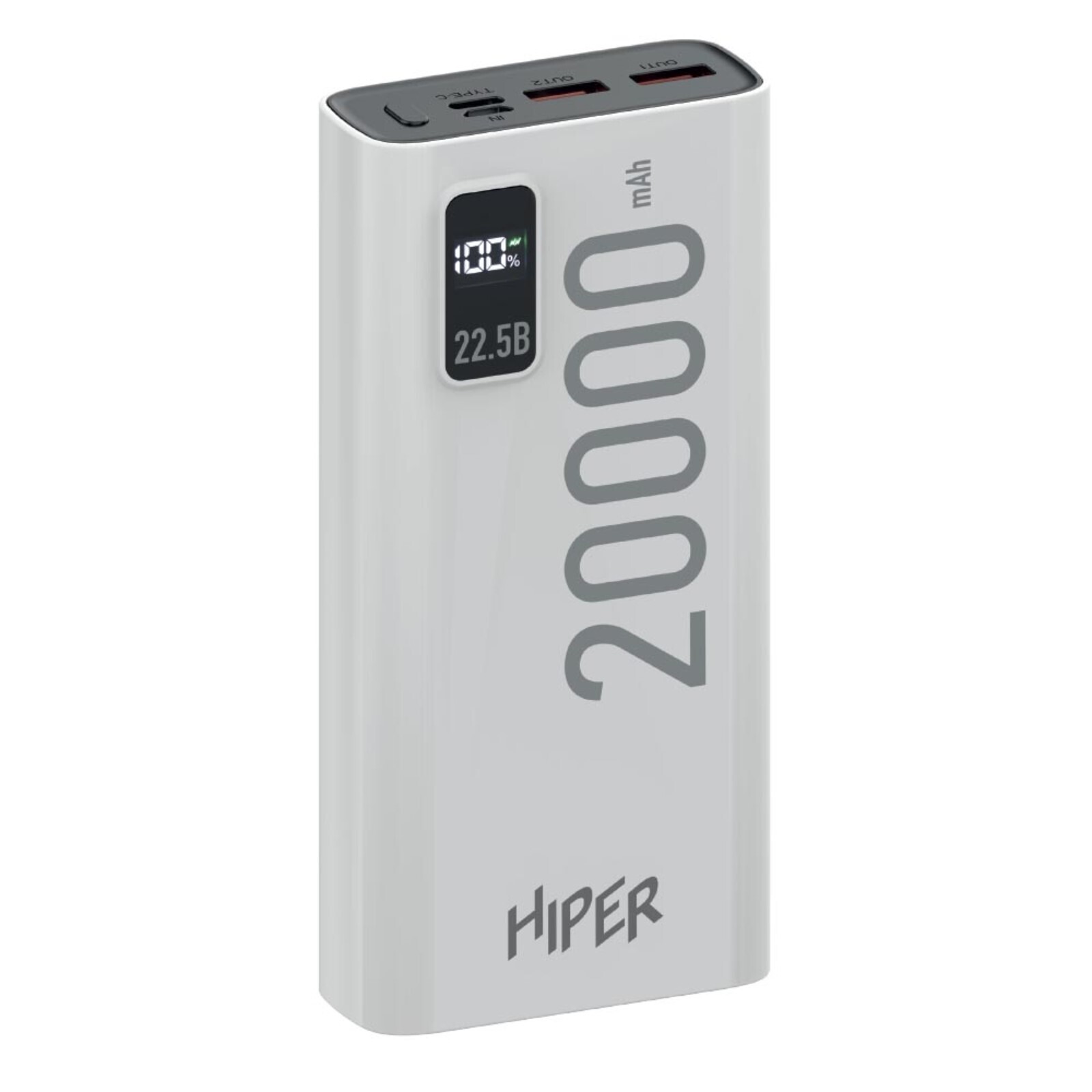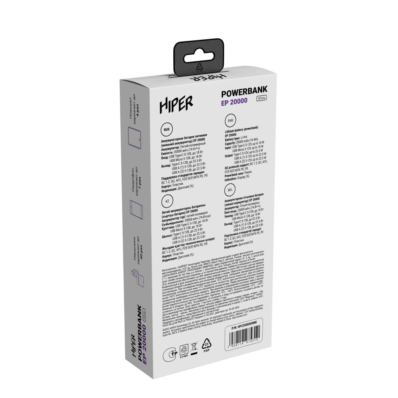 Внешний аккумулятор Hiper EP 20000, 20000 мАч, 3A, 2 USB, QC, PD, дисплей, белый