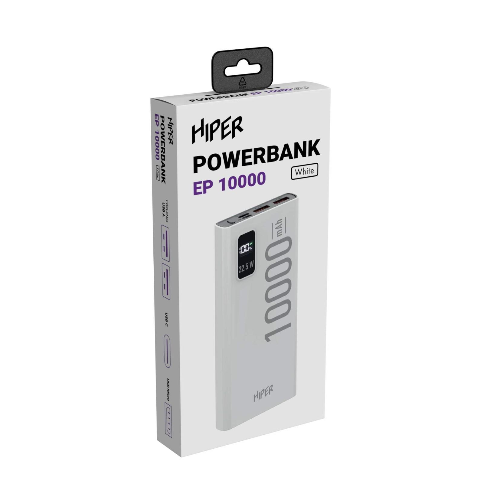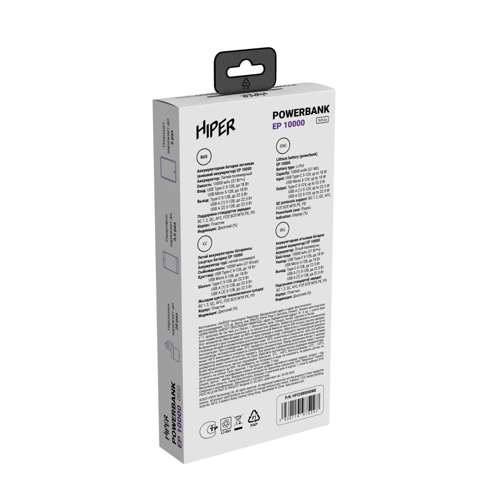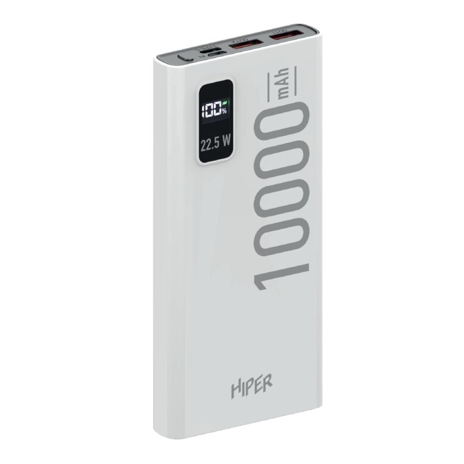 Внешний аккумулятор Hiper EP 10000, 10000 мАч, 3A, 2 USB, QC, PD, дисплей, белый