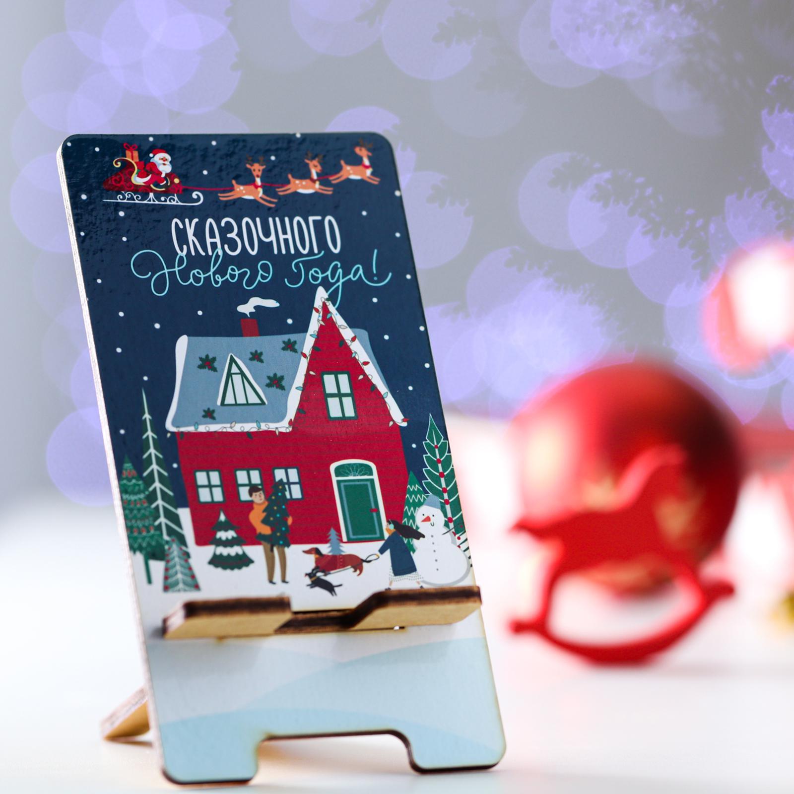 Подставка под телефон "Сказочного Нового Года!" красный дом