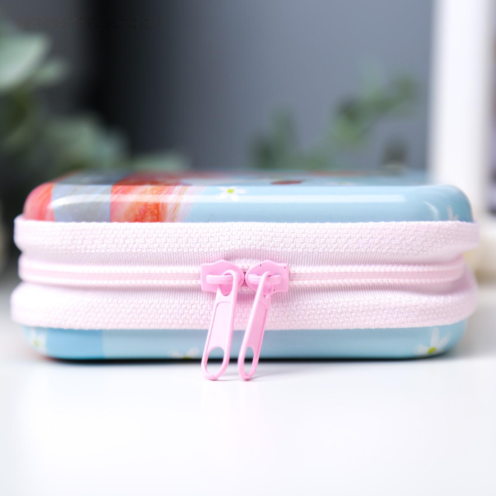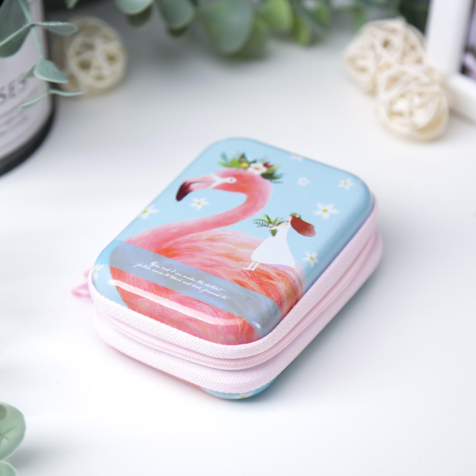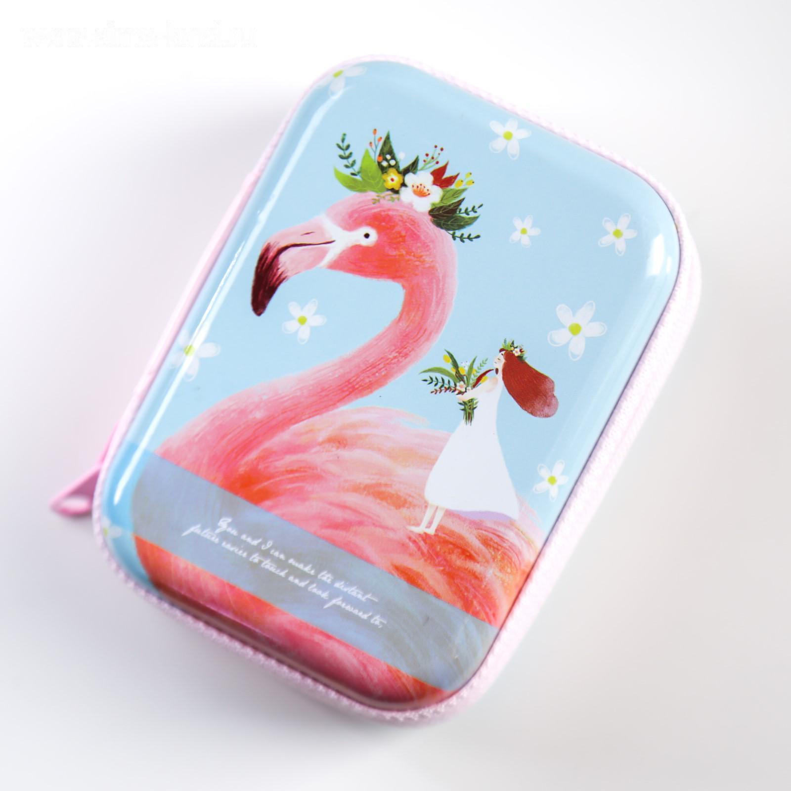 Шкатулка металл на молнии "Фламинго с цветами и девушка" 9х6,5х3,3 см