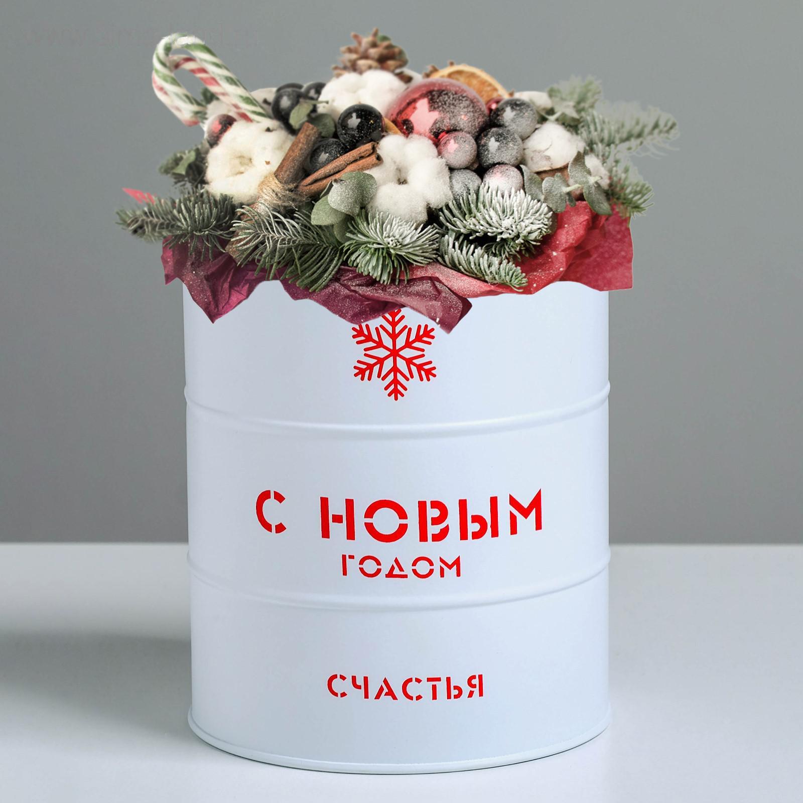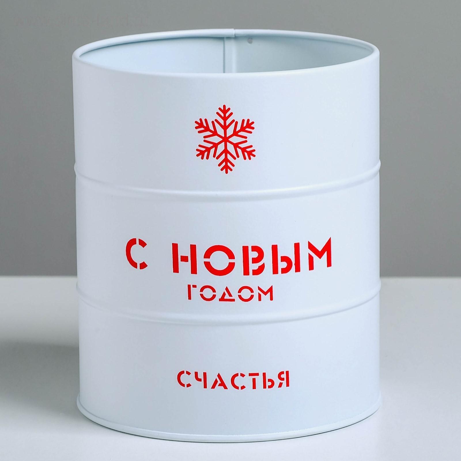 Банка-бочка, белая «С новым годом», 12 х 14 см