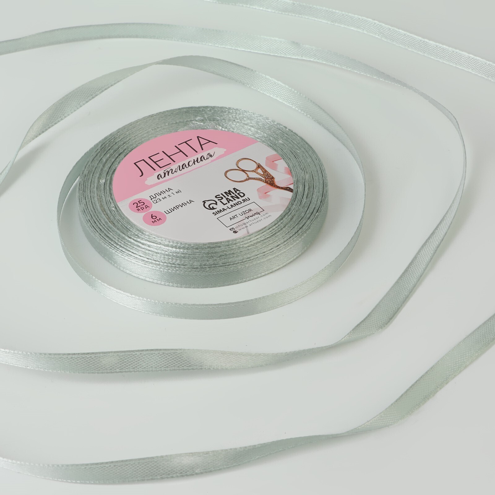 Лента атласная, 6 мм × 23 ± 1 м, цвет серебряный №176