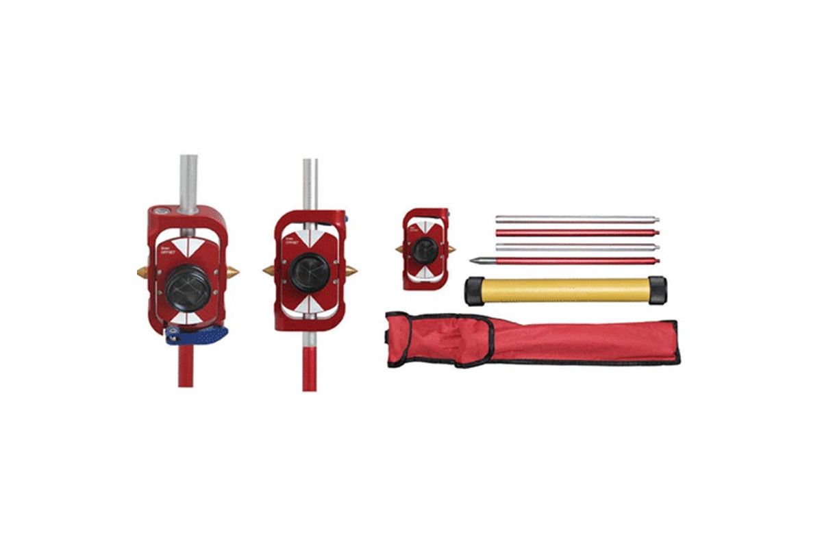 Подвижная минипризма RGK MP108 с держателем, уровнем и минивехой в комплекте с возможностью вертикального перемещения по вешке.