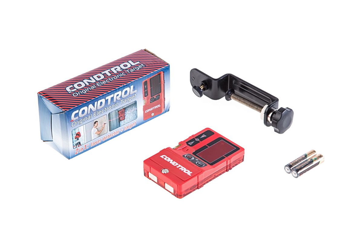 CONDTROL – электронный отражатель для лазерных нивелиров. Прибор поможет увеличить дальность действия лазерных уровней серии XLiner до 200 м. Для удобства предназначены 2 рабочие поверхности. В верхней части устройства установлен магнит для крепления на вертикальной конструкции или потолочном профиле. Вес модели – 0,23 кг.