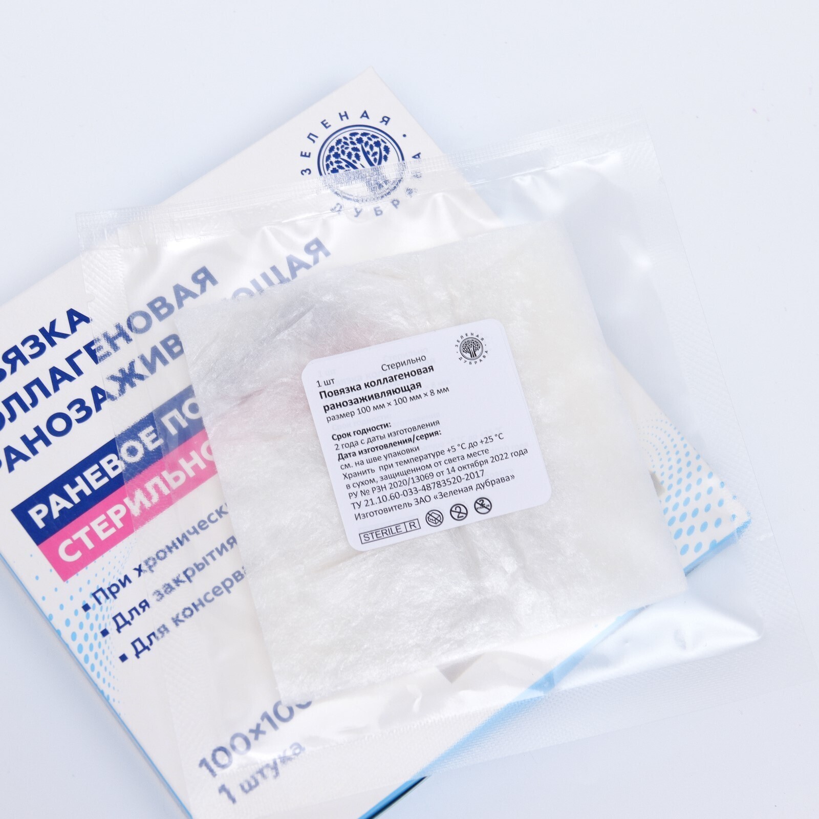 Повязка коллагеновая ранозаживляющая 100*100*8,