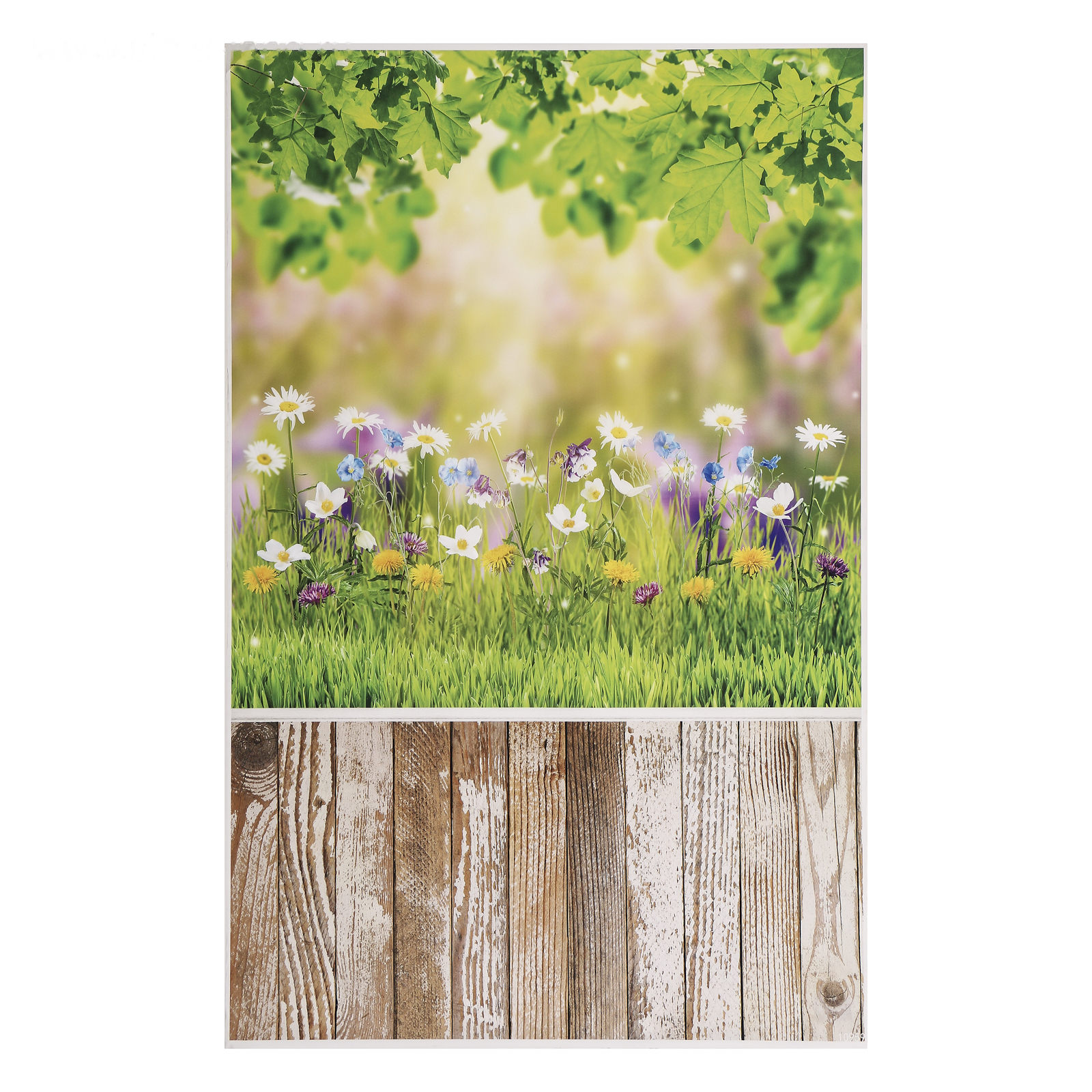 Фотофон винил "Летняя цветочная полянка" стена+пол 125х80 см